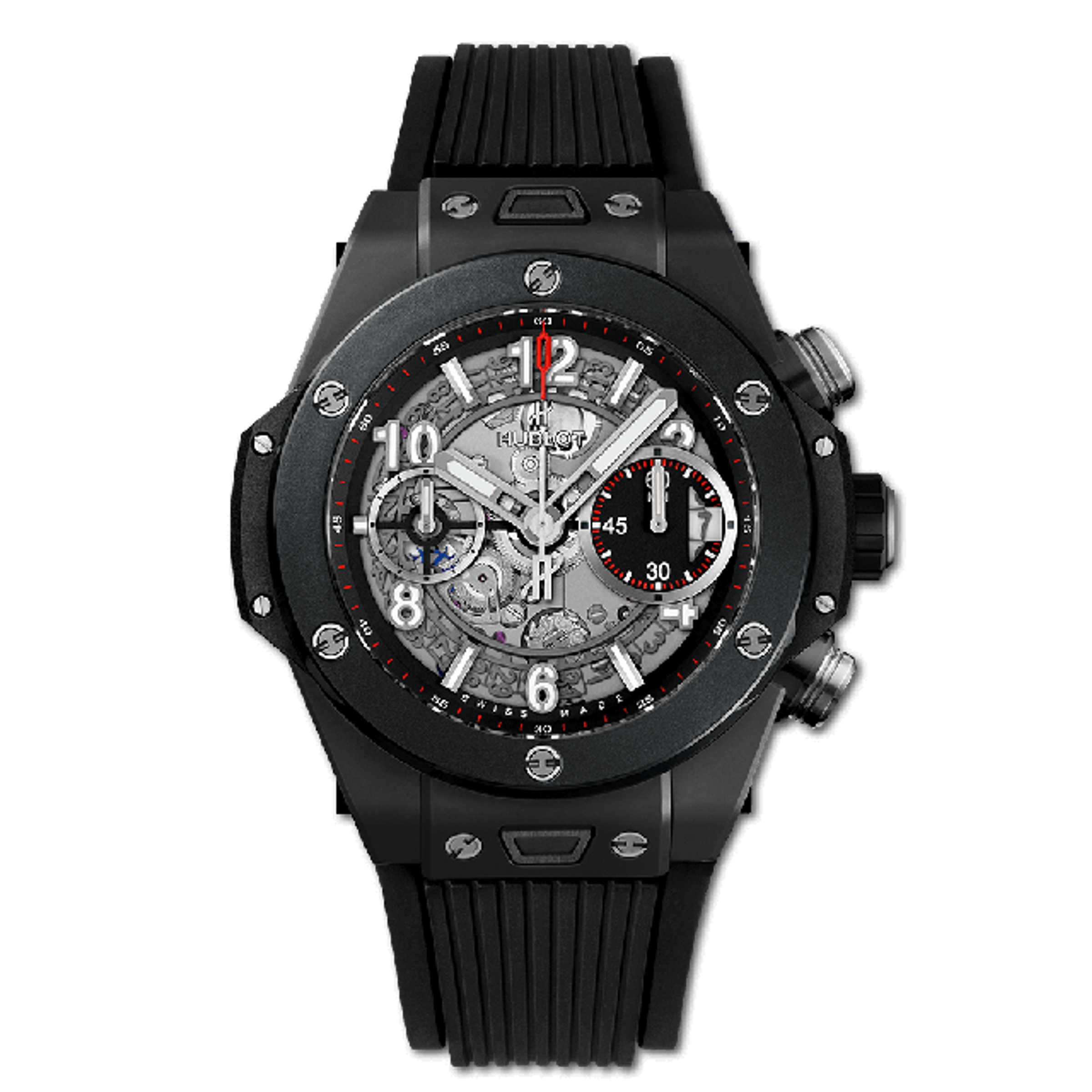 Herren Automatikuhren Hublot, Gehäuse - Keramik, 42 mm. Armband - Kautschuk.