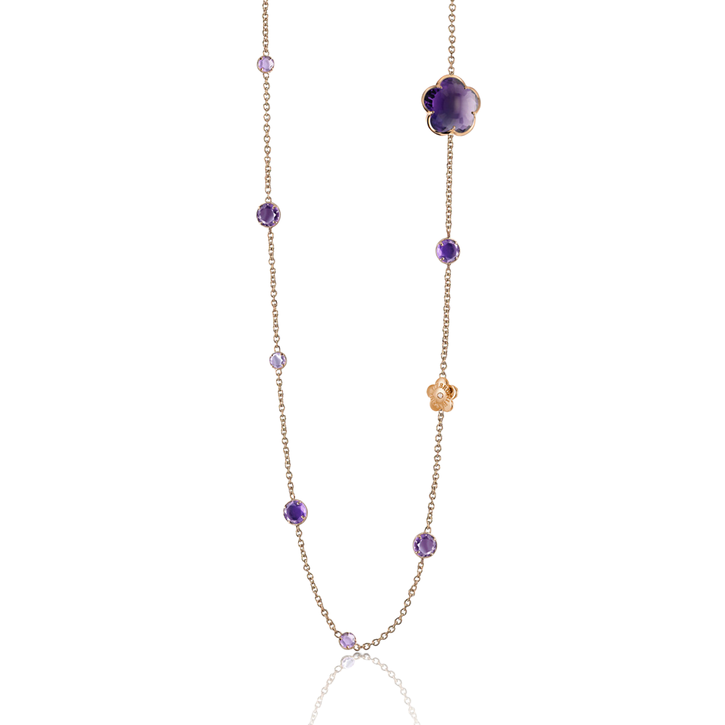 Halskette aus 18K Roségold, Länge 100 cm. Amethyste in Blumenform - 18,52 ct. Gesamtgewicht der Diamanten - 0,01 ct.