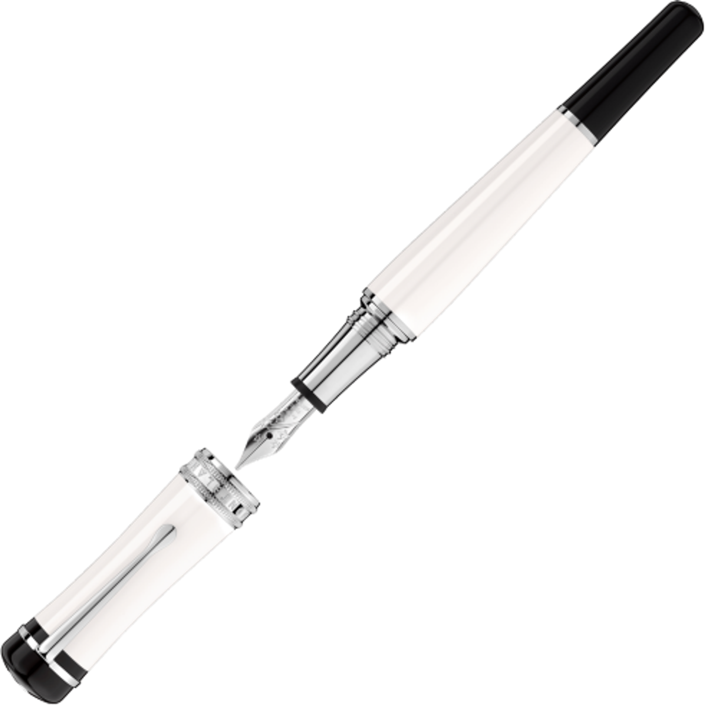 Weißer Füllfederhalter - mit Patronen. Aus seltener Harz. Platinclip.