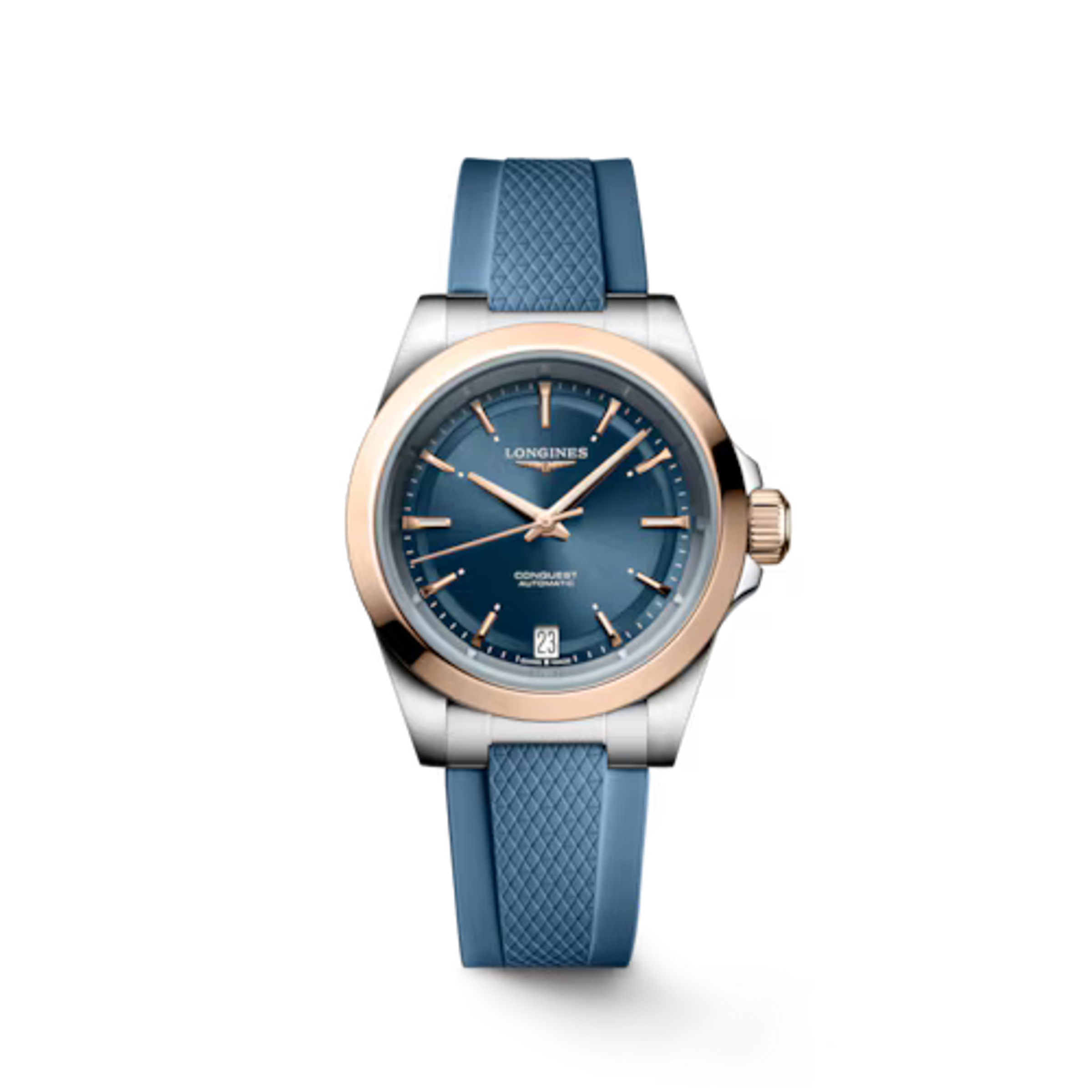 Damenautomatikuhren. Gehäuse - Edelstahl/18K Gold, 34 mm. Armband - Kautschuk. Schließe mit doppelter Sicherheits-Faltschließe und Mikrosystem zur Einstellung.