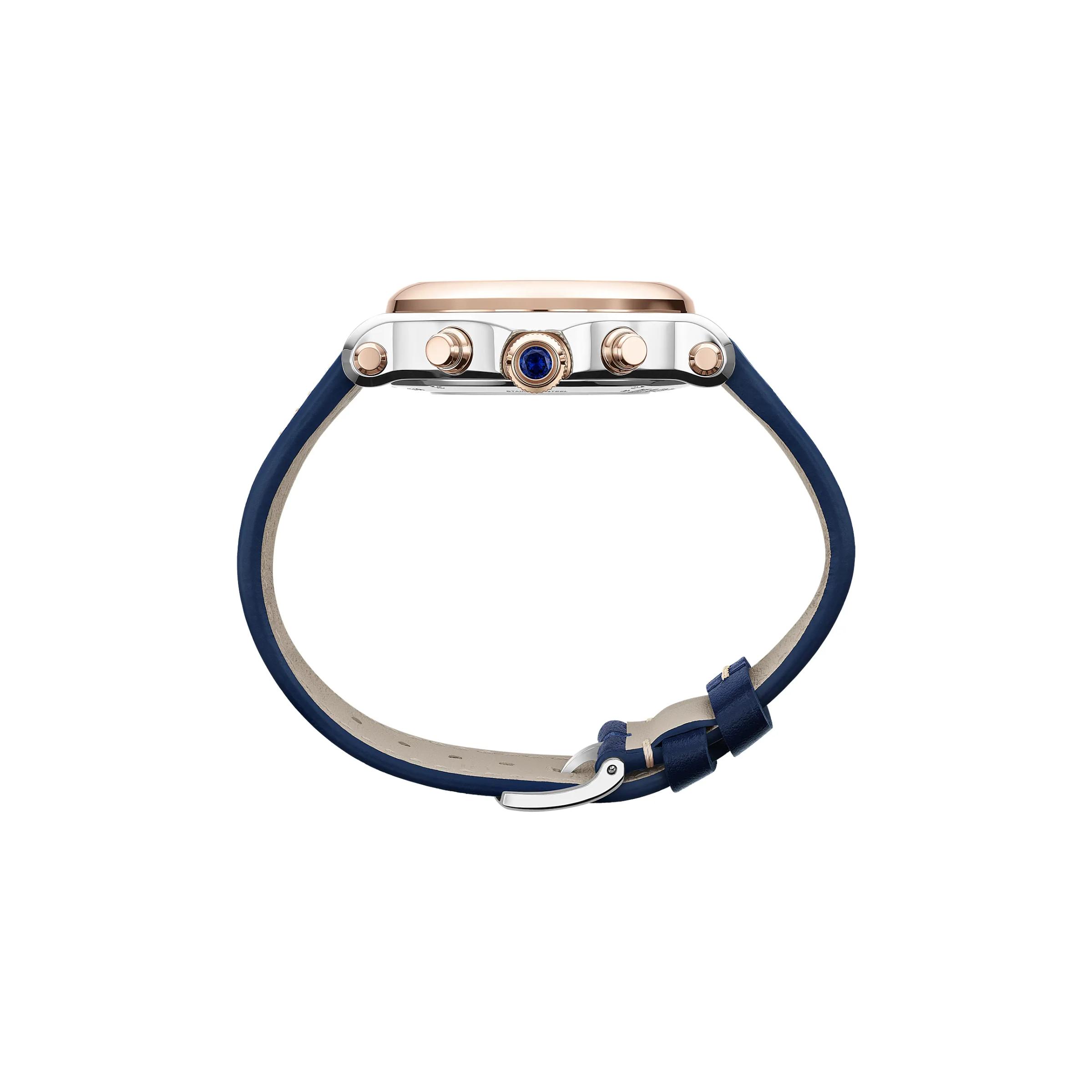 Damenautomatikuhren, Gehäuse - Edelstahl / 18K Roségold, 40 mm Armband - Kalbsleder Gesamtgewicht der Diamanten (7 Stück) - 0,39 ct 1 Saphir – 0,27 ct (Krone)