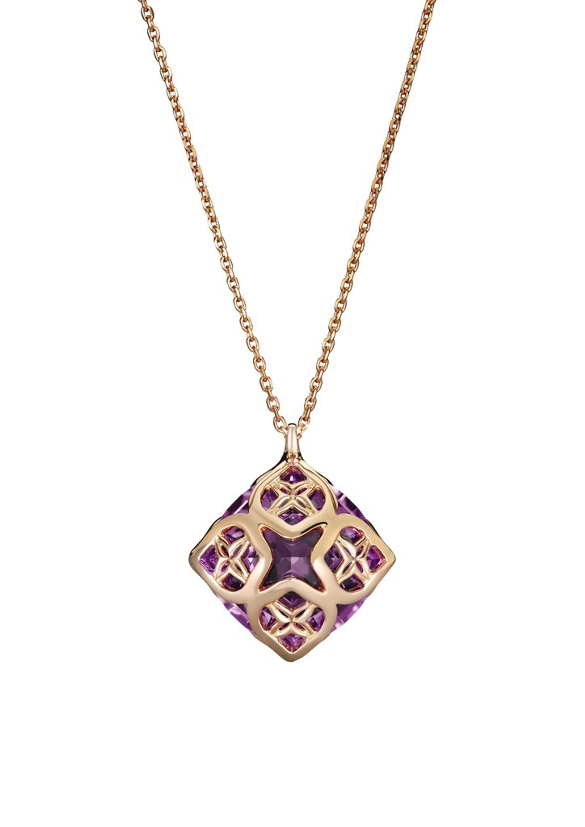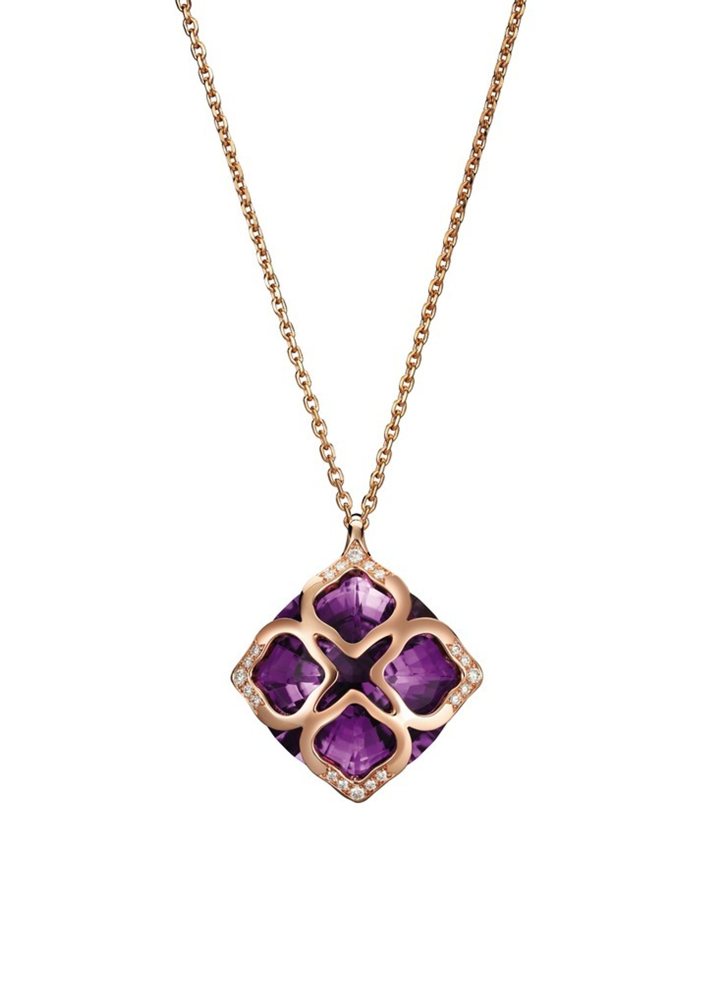 Anhänger aus 18K Roségold Gesamtgewicht des Diamanten 0,14 ct Gesamtgewicht des Amethysten 20 ct