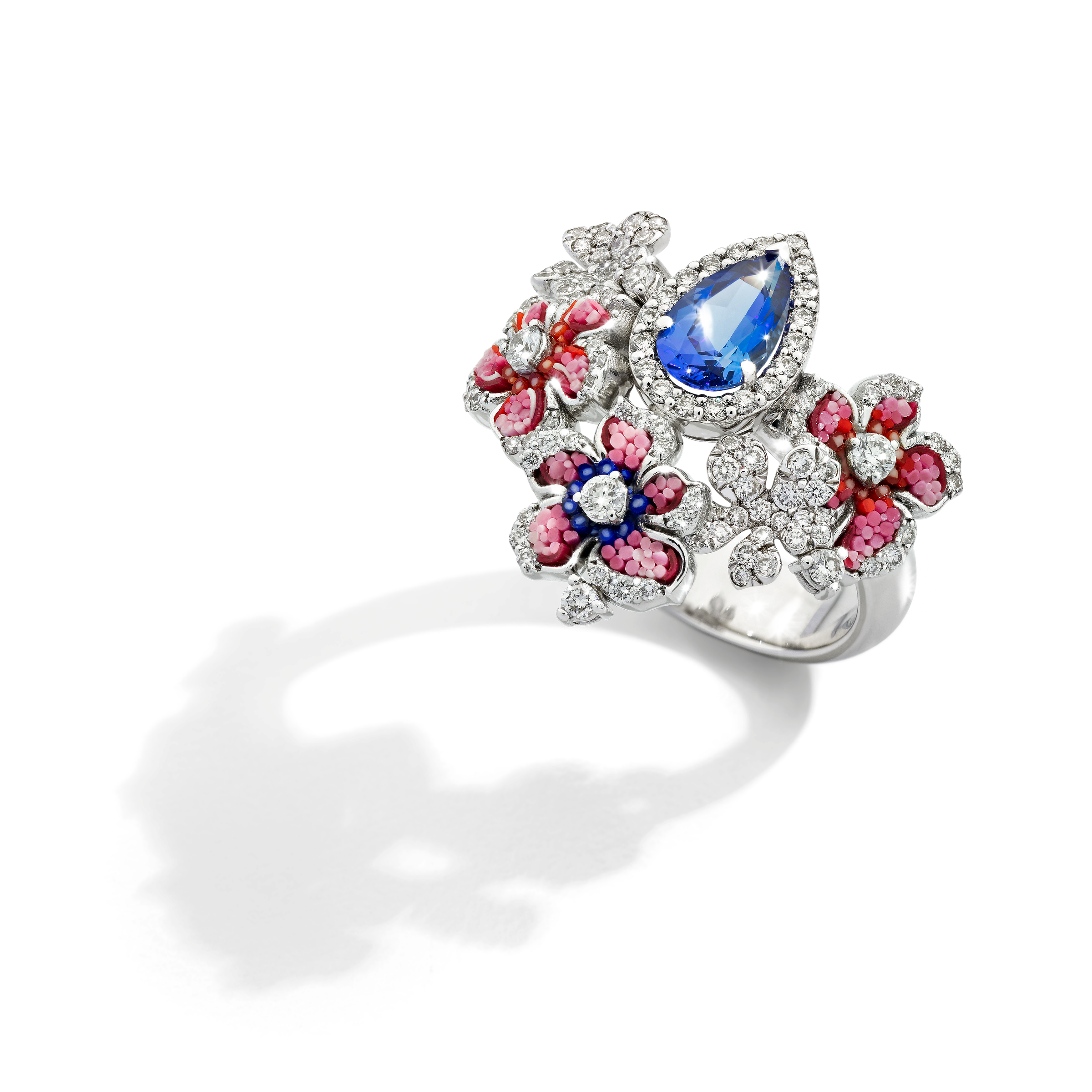 Damenring aus 18K Weißgold. Gesamtgewicht: Diamanten - 0,69 ct und Tansanite - 1,01 ct.