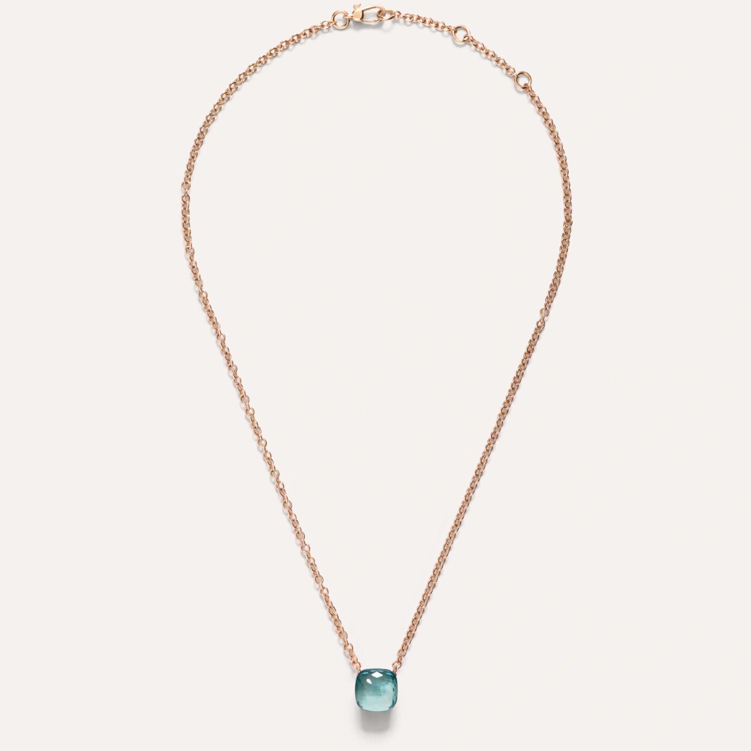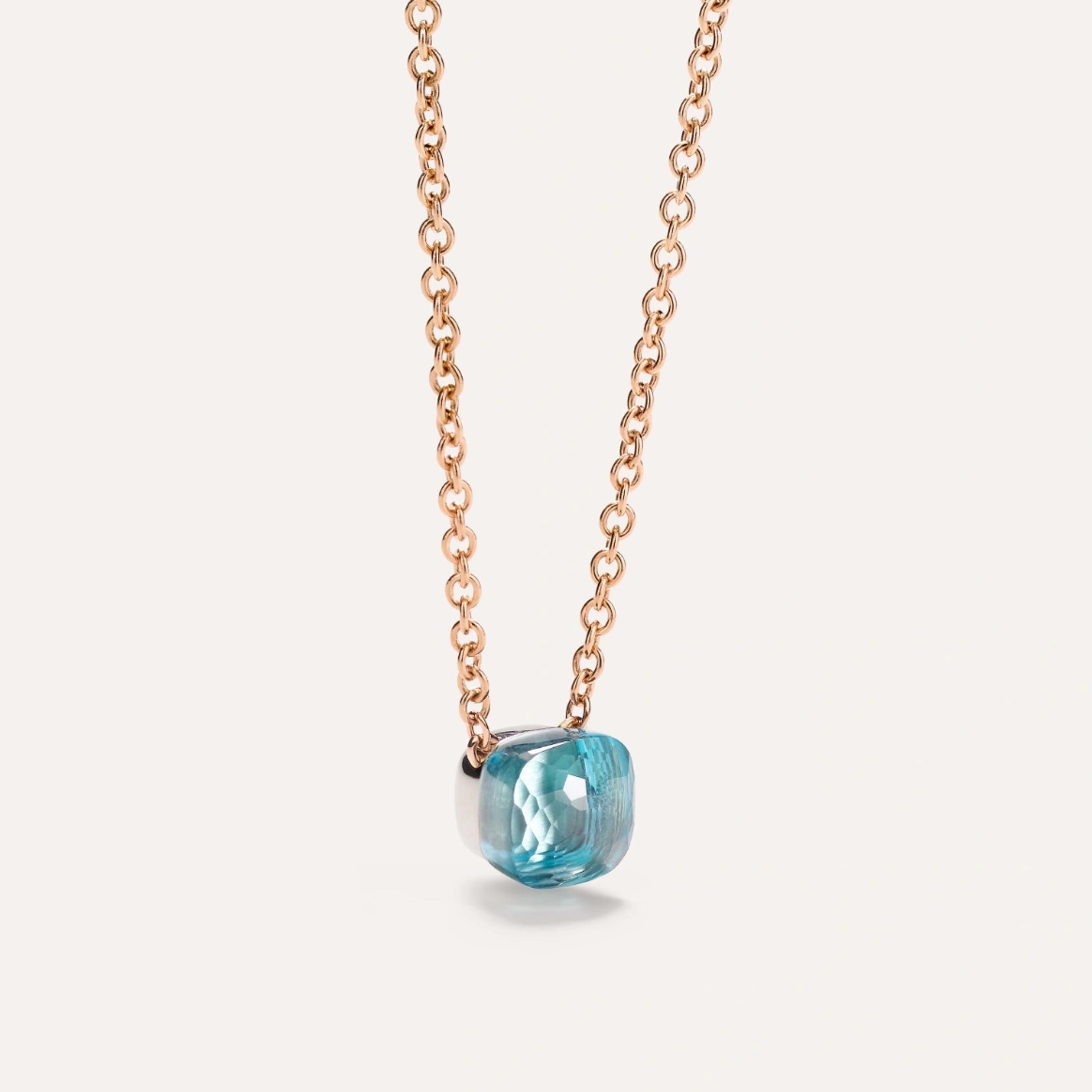 Halskette aus 18K Rosé- und Weißgold. Verstellbare Kettenlänge – 38–40–42 cm. Blauer Topas mit einem Gewicht von 6 ct.