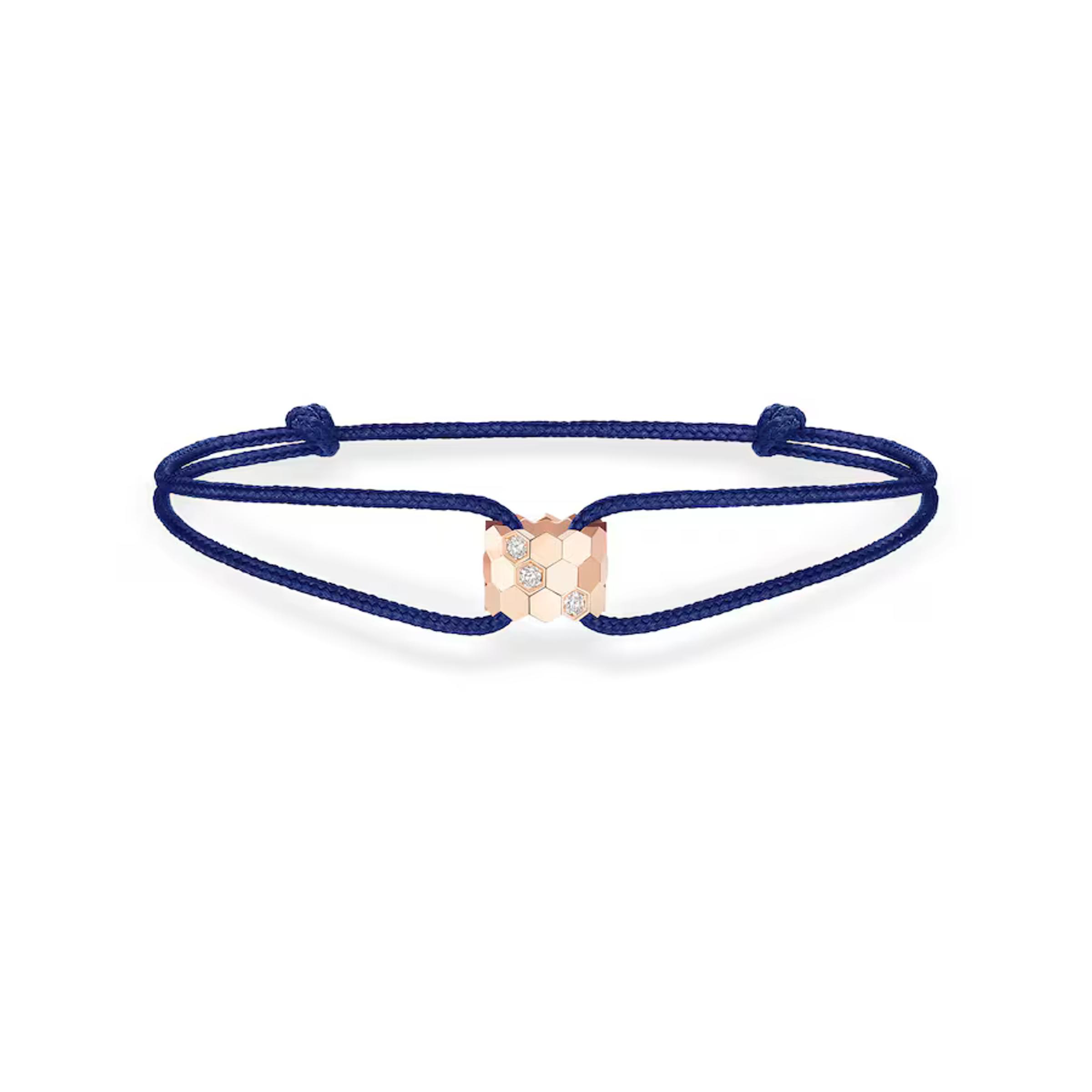 Armband aus 18K Roségold Schnur aus recyceltem Polyester, verstellbare Größe. Gesamtgewicht der Diamanten 0,05 ct G VS+.