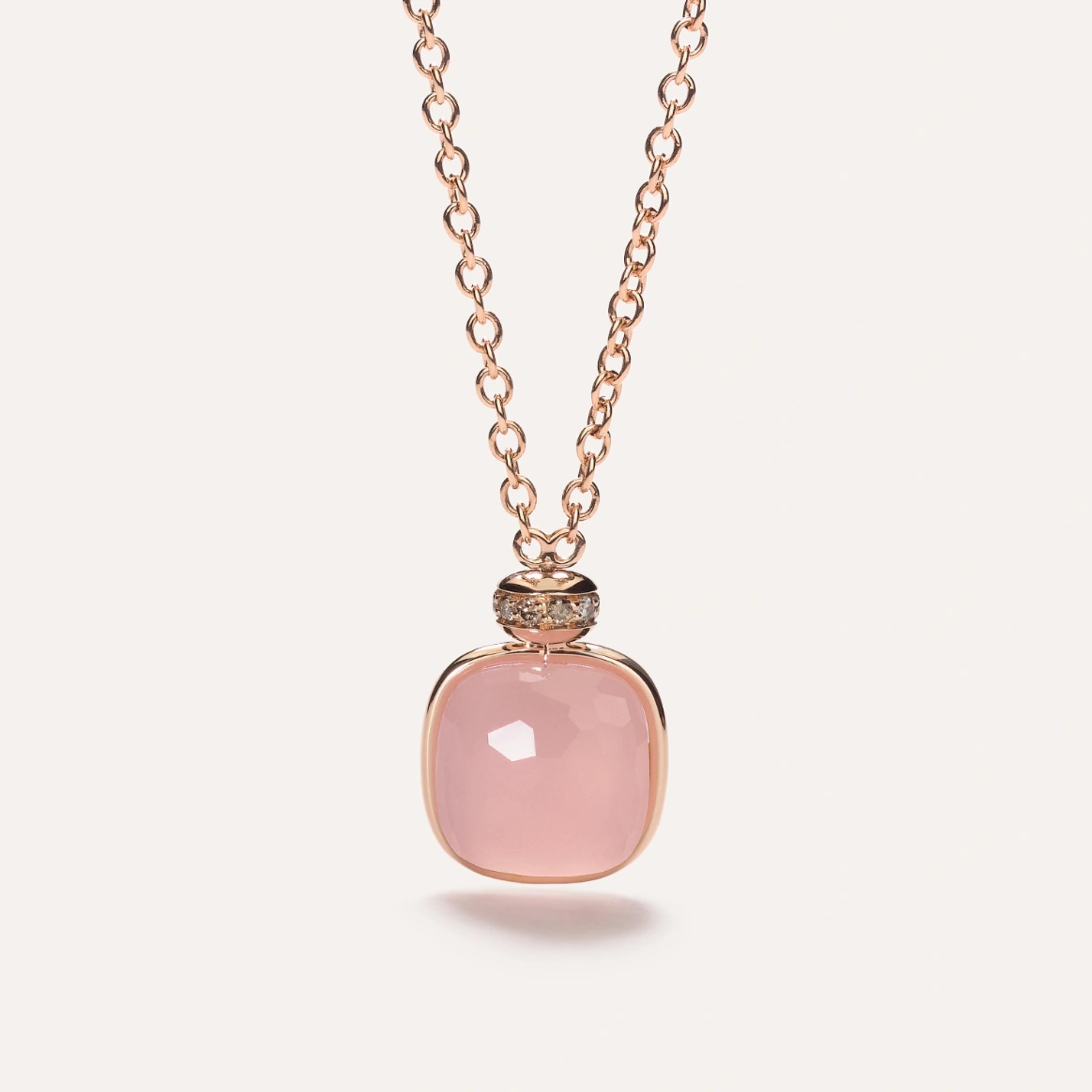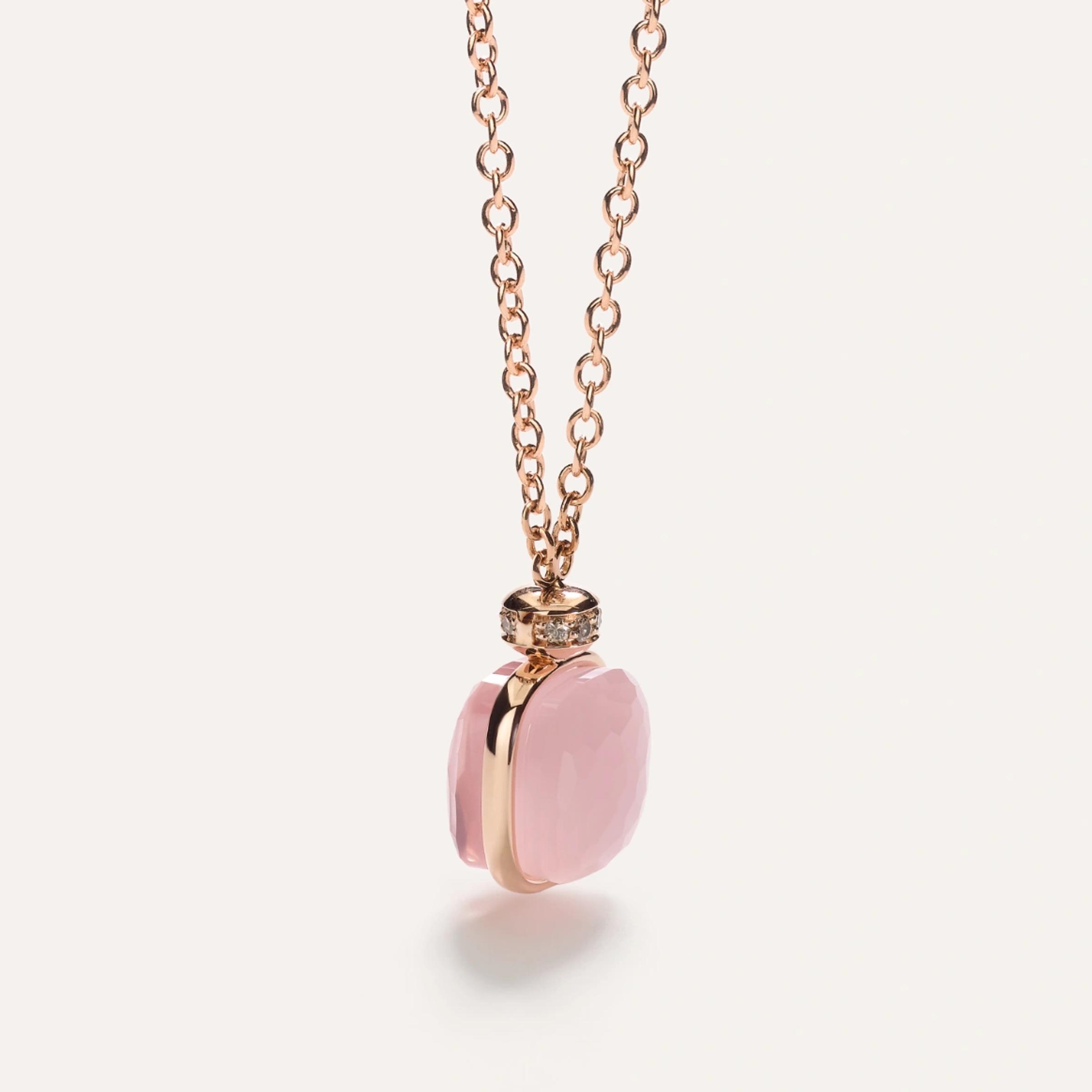 Halskette aus 18K Roségold. Länge der Kette 70 cm, verstellbar. Dublett aus rosa Quarz und Chalcedon mit einem Gewicht von 9,5 ct. Gesamtgewicht der Diamanten (braun) - 0,1 ct.