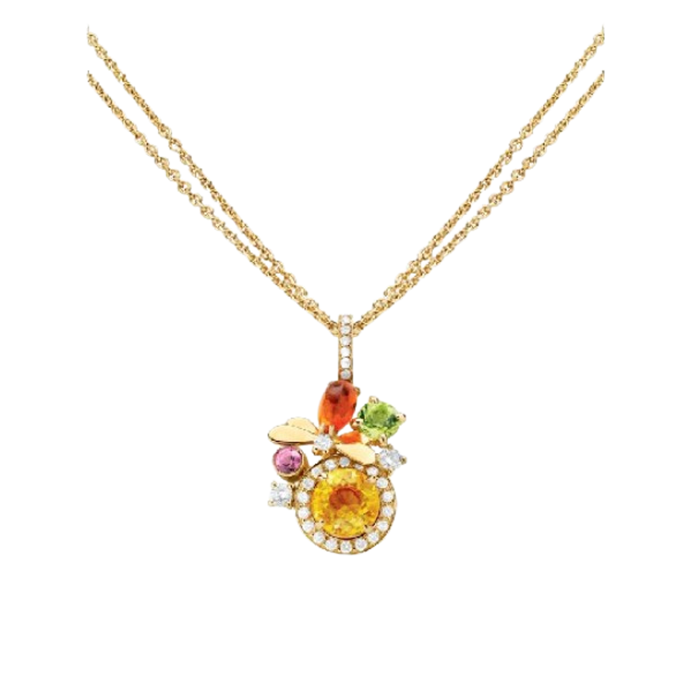 Halskette aus 18K Gelbgold. Diamanten, Citrin, Peridot, rosa Turmalin, Opal.