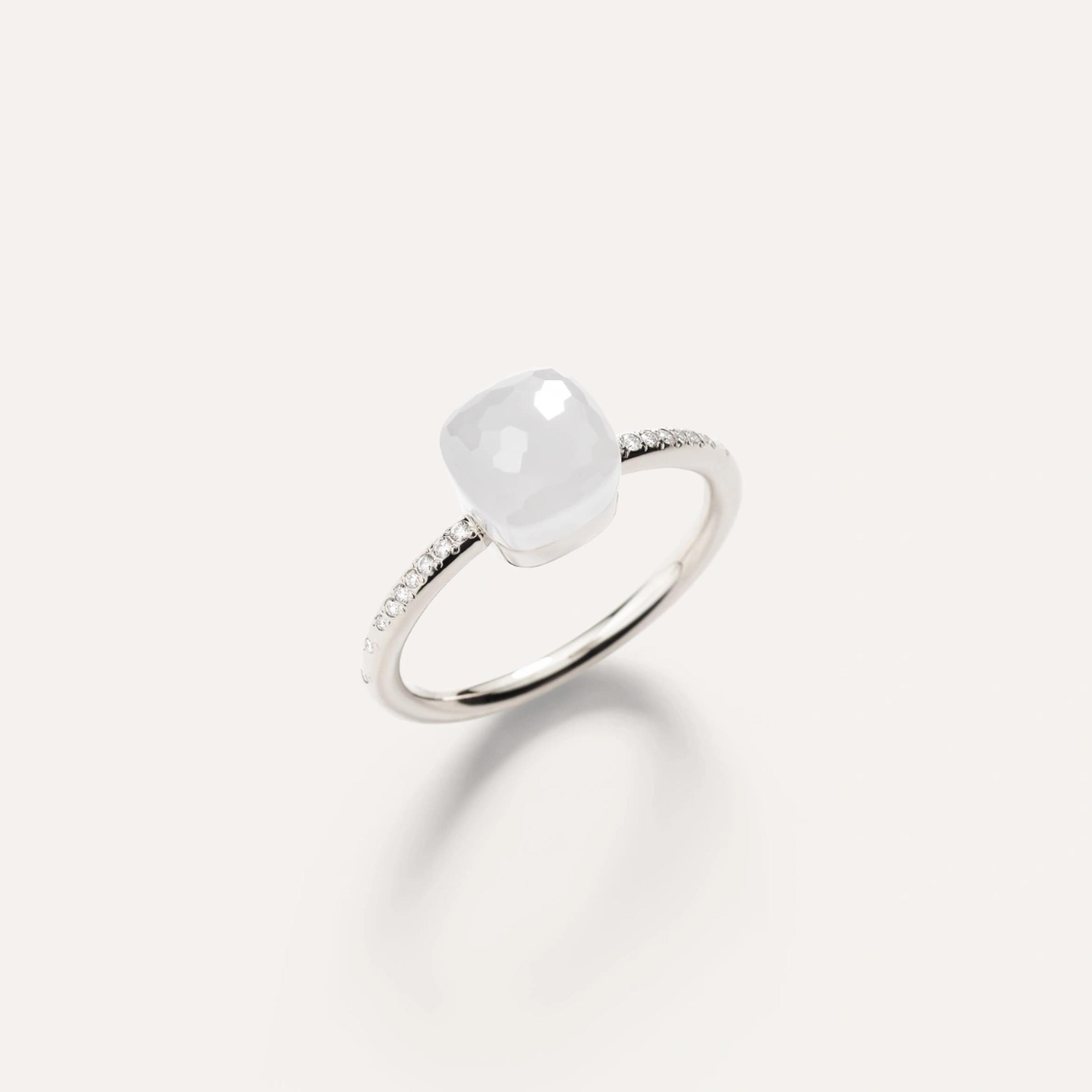 Ring aus 18K Rosé- und Weißgold. Milchquarz mit einem Gesamtgewicht von 4,9 ct. Gesamtgewicht der Diamanten 0,1 ct.