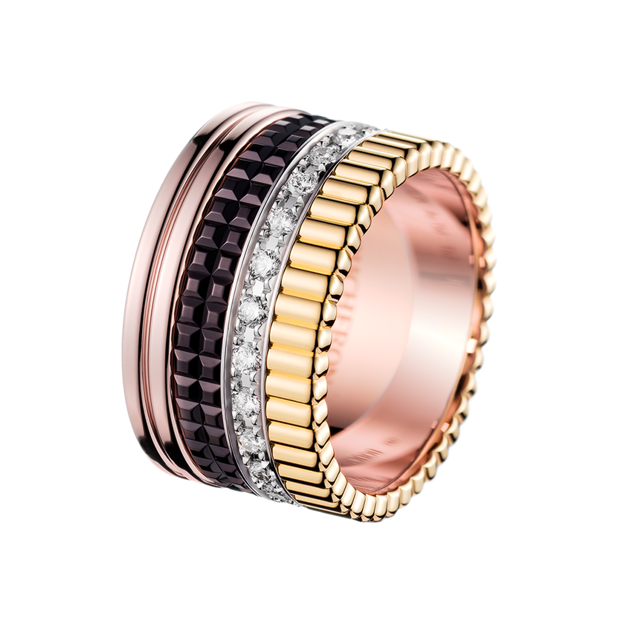 Ring aus 18K Gelbgold, Weißgold und Roségold sowie braunem PVD. Das Gesamtgewicht der Diamanten beträgt 0,51 ct.
