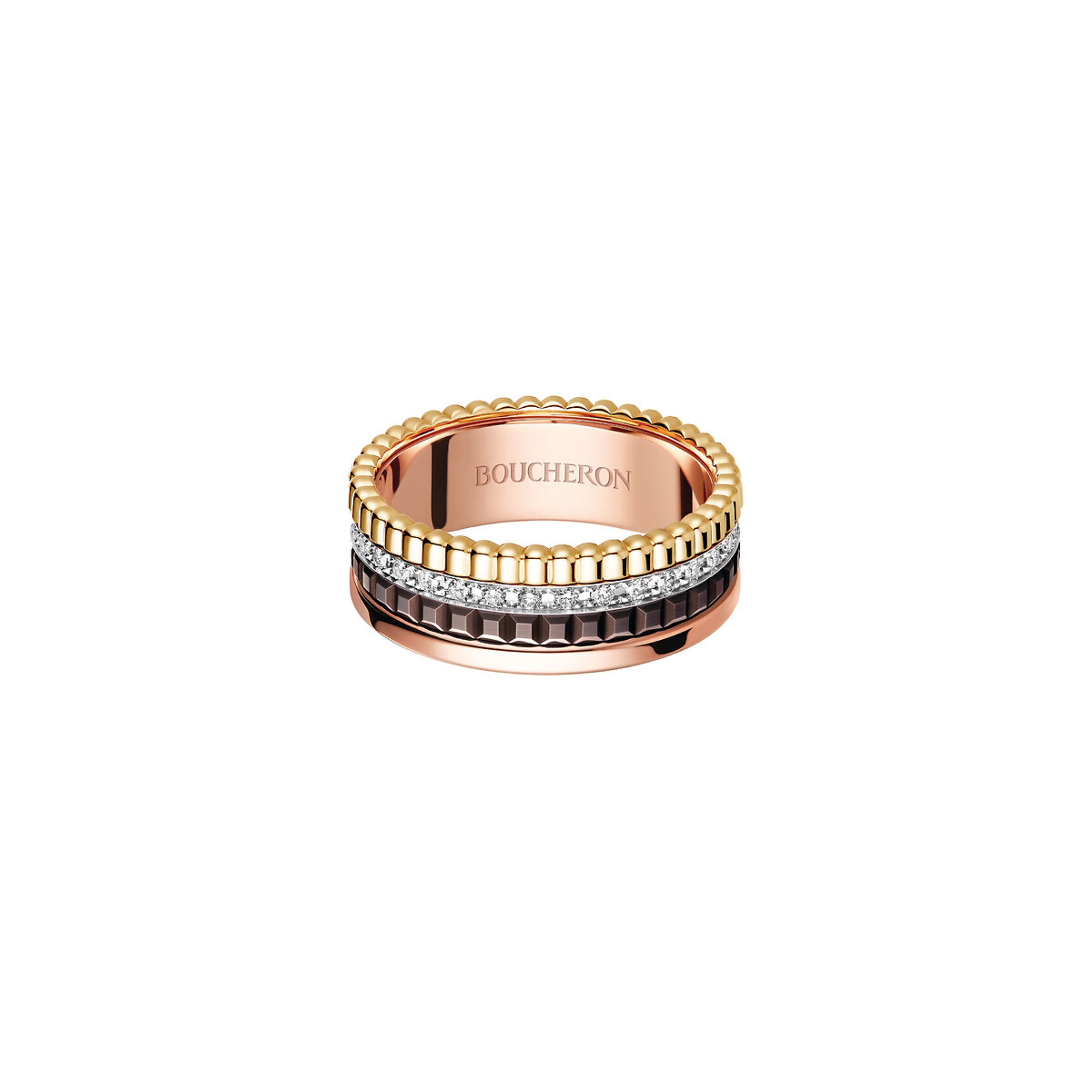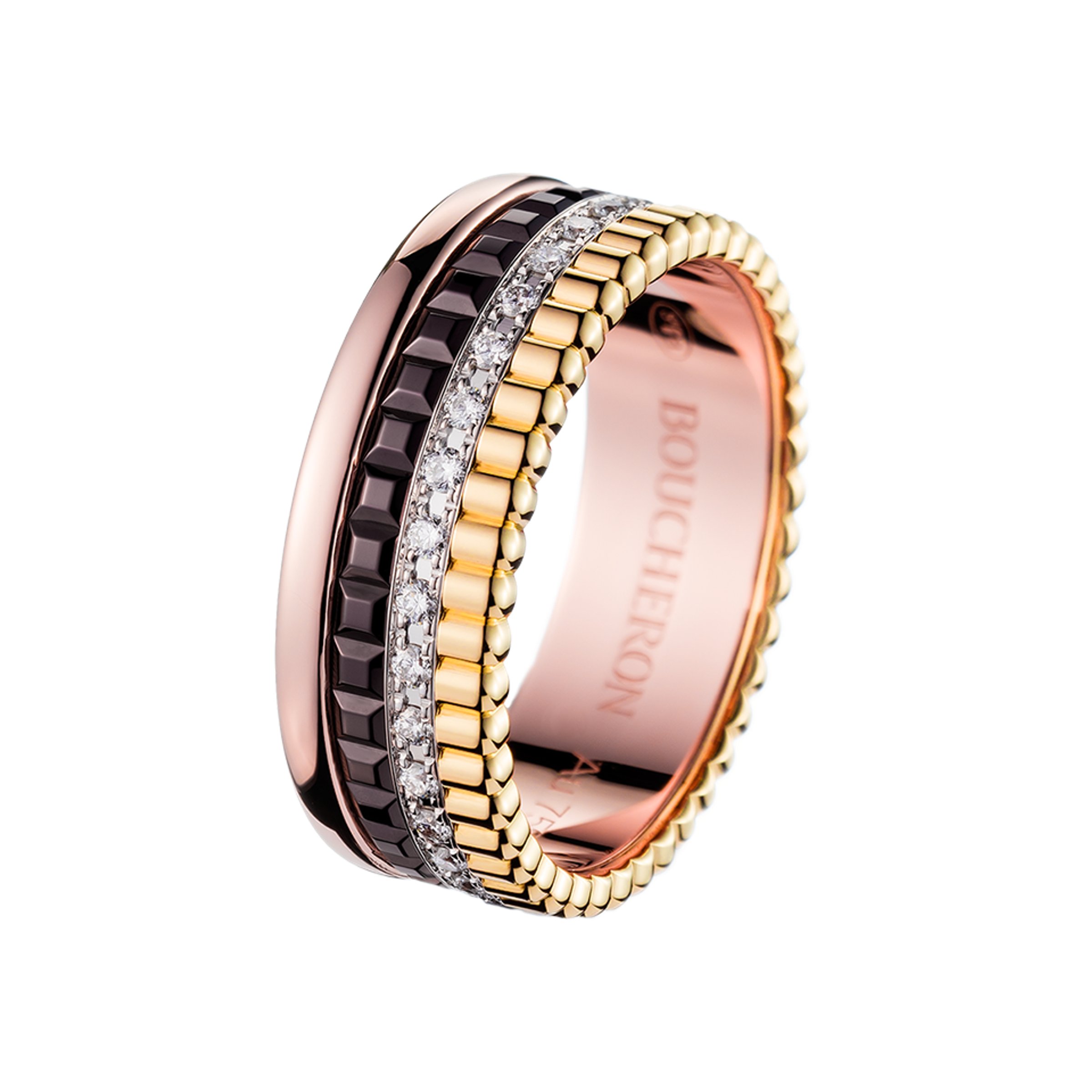 Ring aus 18K Gelbgold, Weißgold und Roségold sowie braunem PVD. Das Gesamtgewicht der Diamanten beträgt 0,25 ct.