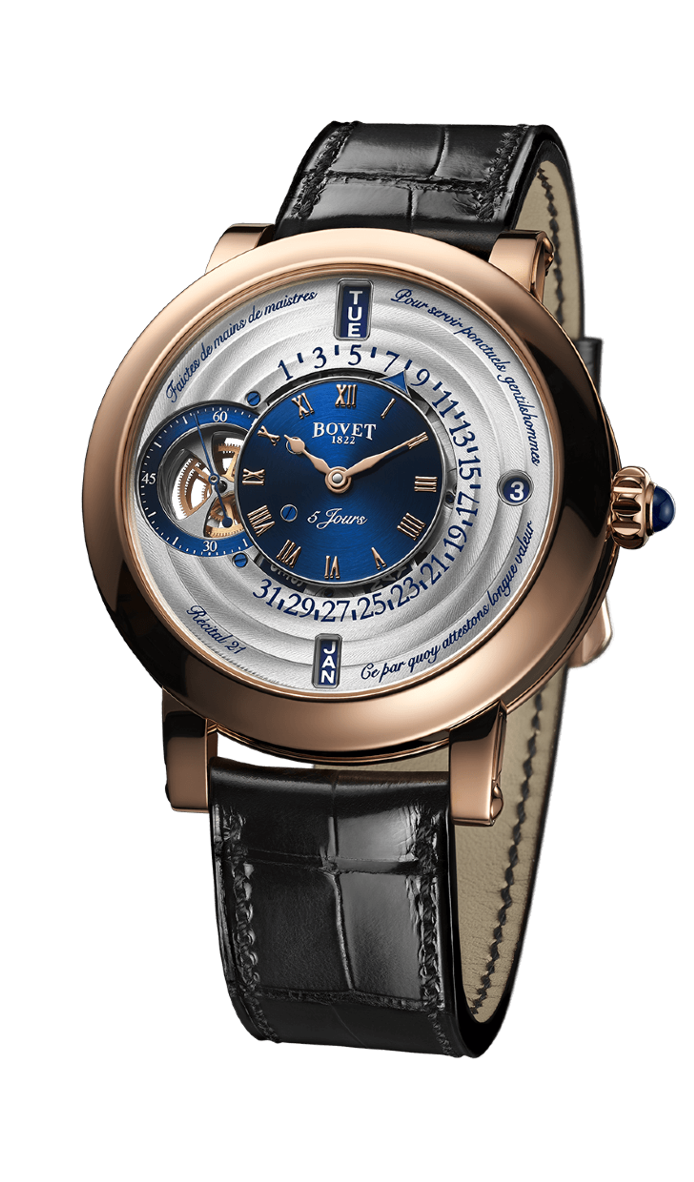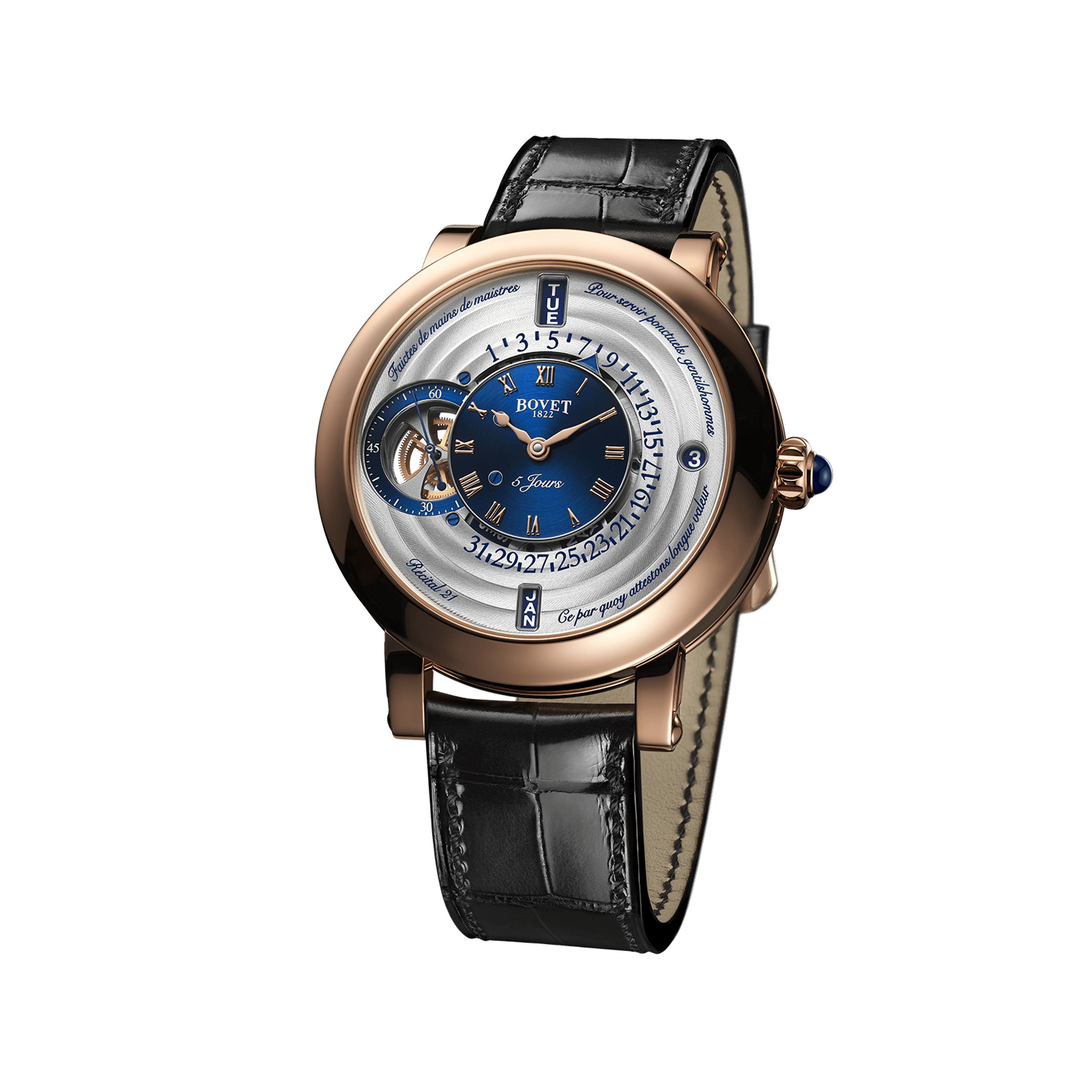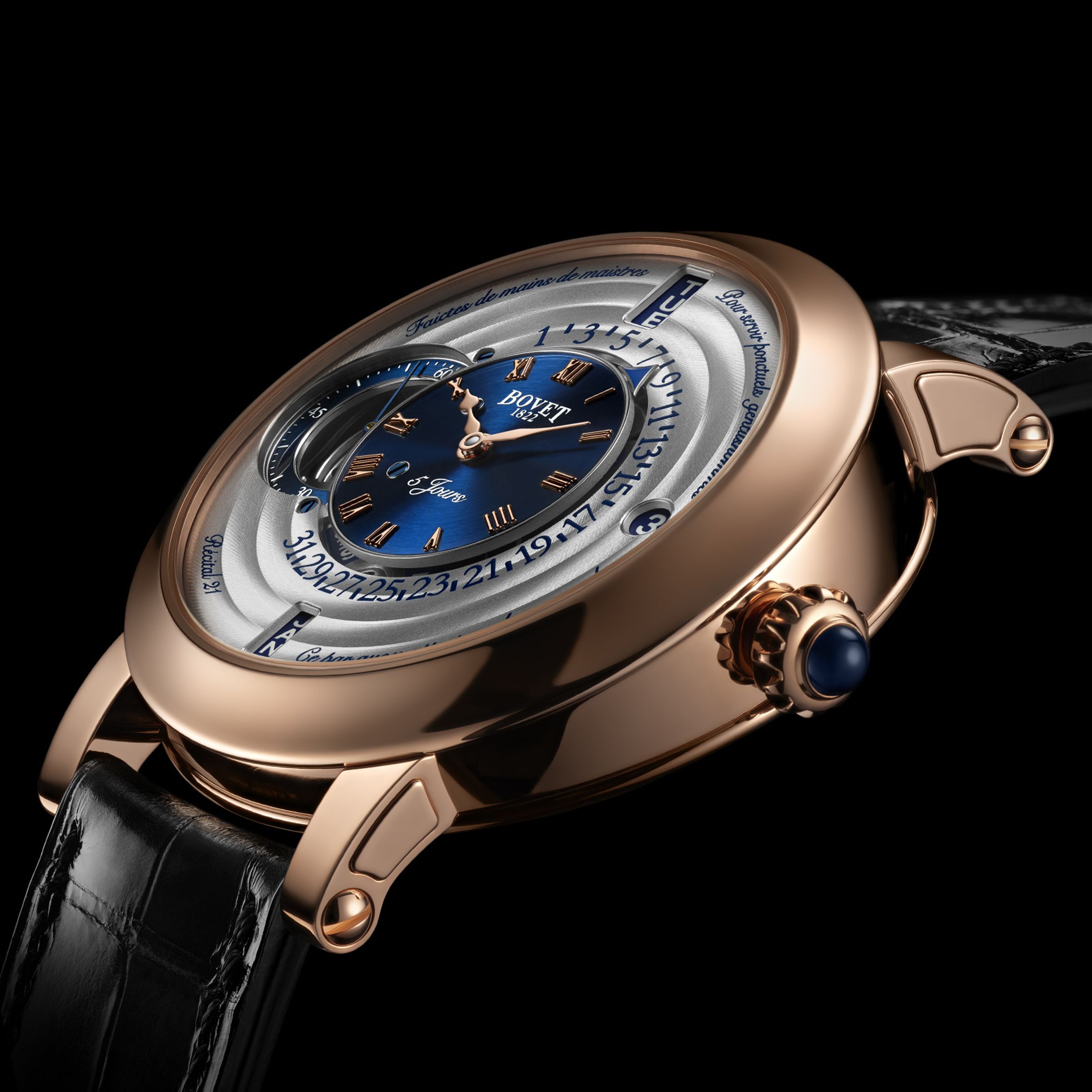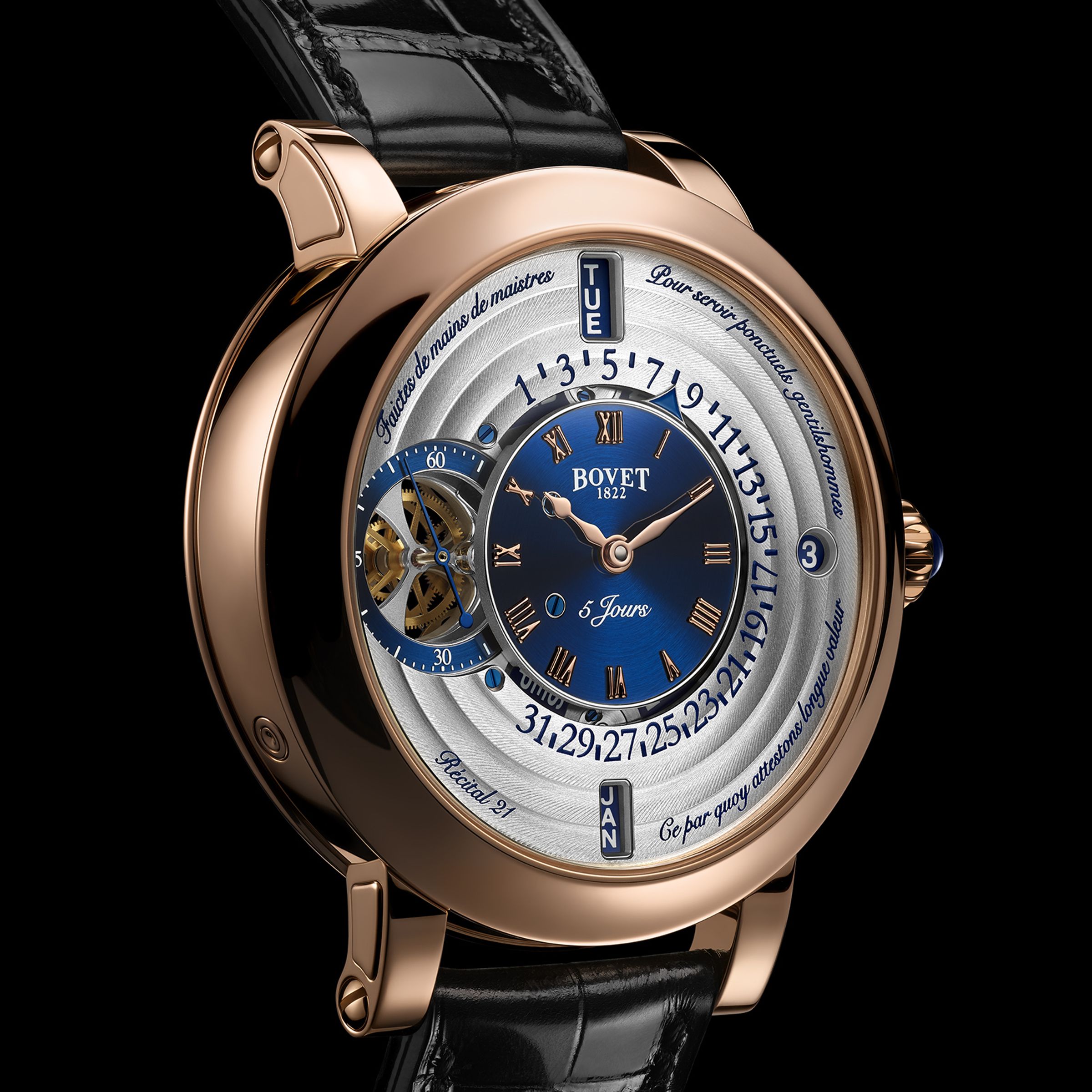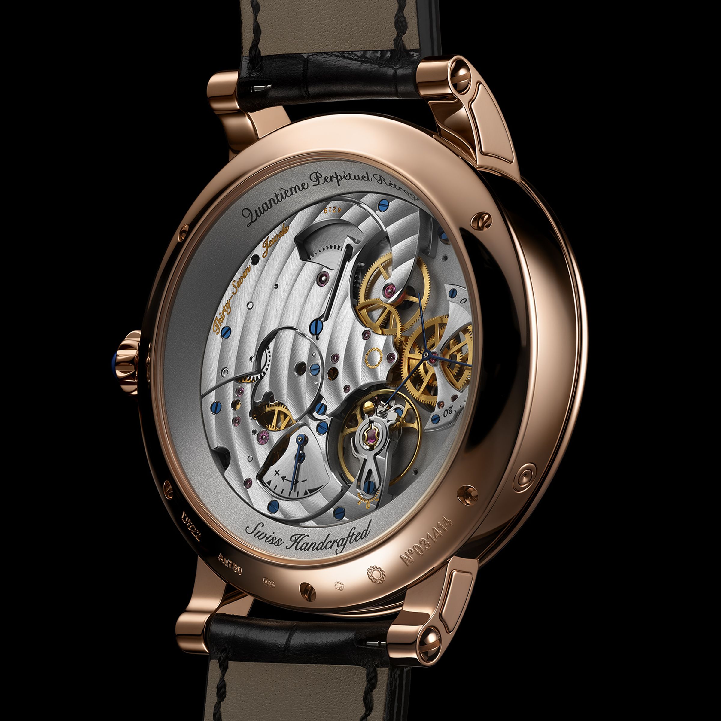 Herrenmechanikuhren mit Handaufzug, Gehäuse - 18K Roségold, 44,4 mm, Armband - Alligator. Limitierte Auflage von 60 Stück.