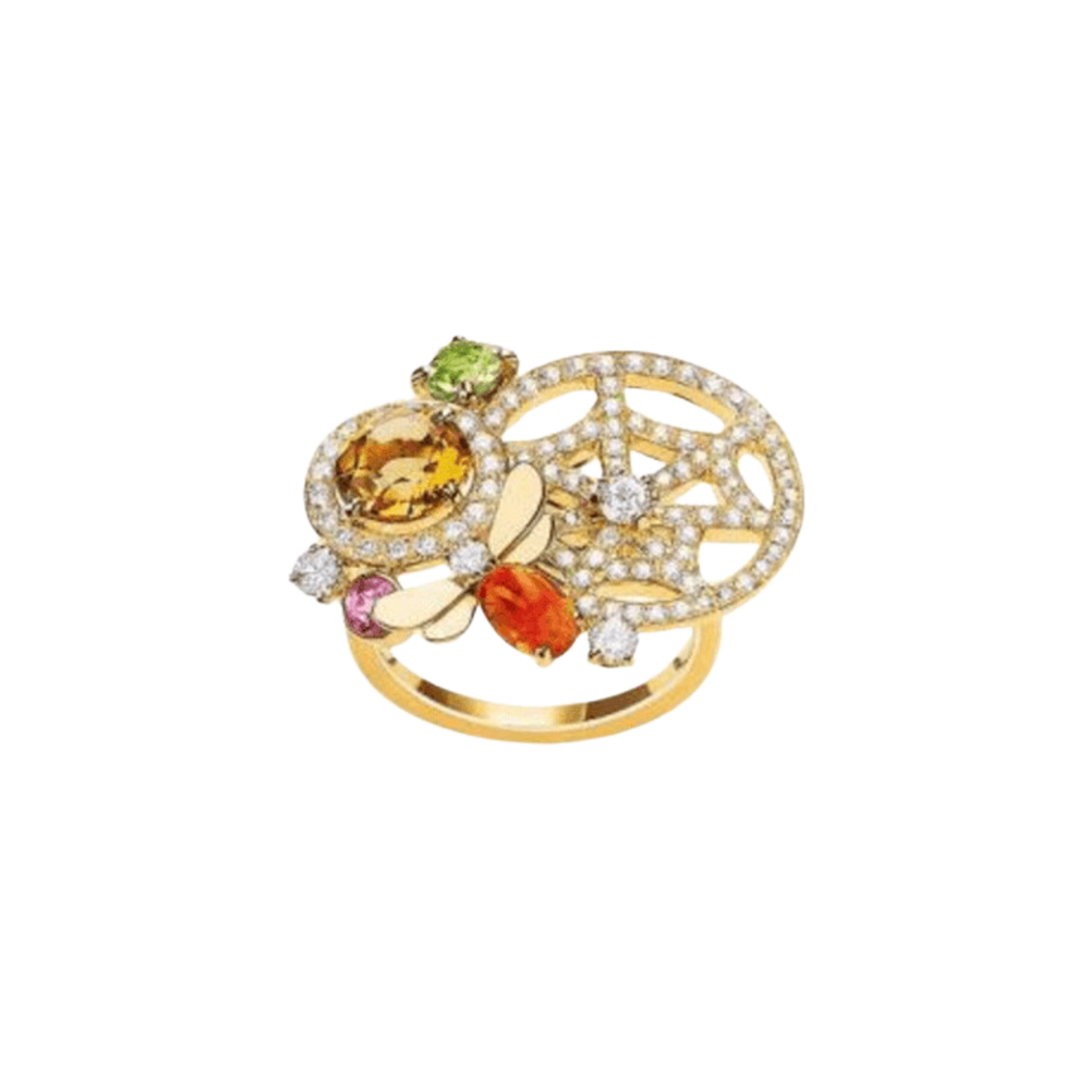 Ring aus 18K Gelbgold mit rosa Turmalin, Peridot, Feueropal und Citrin.