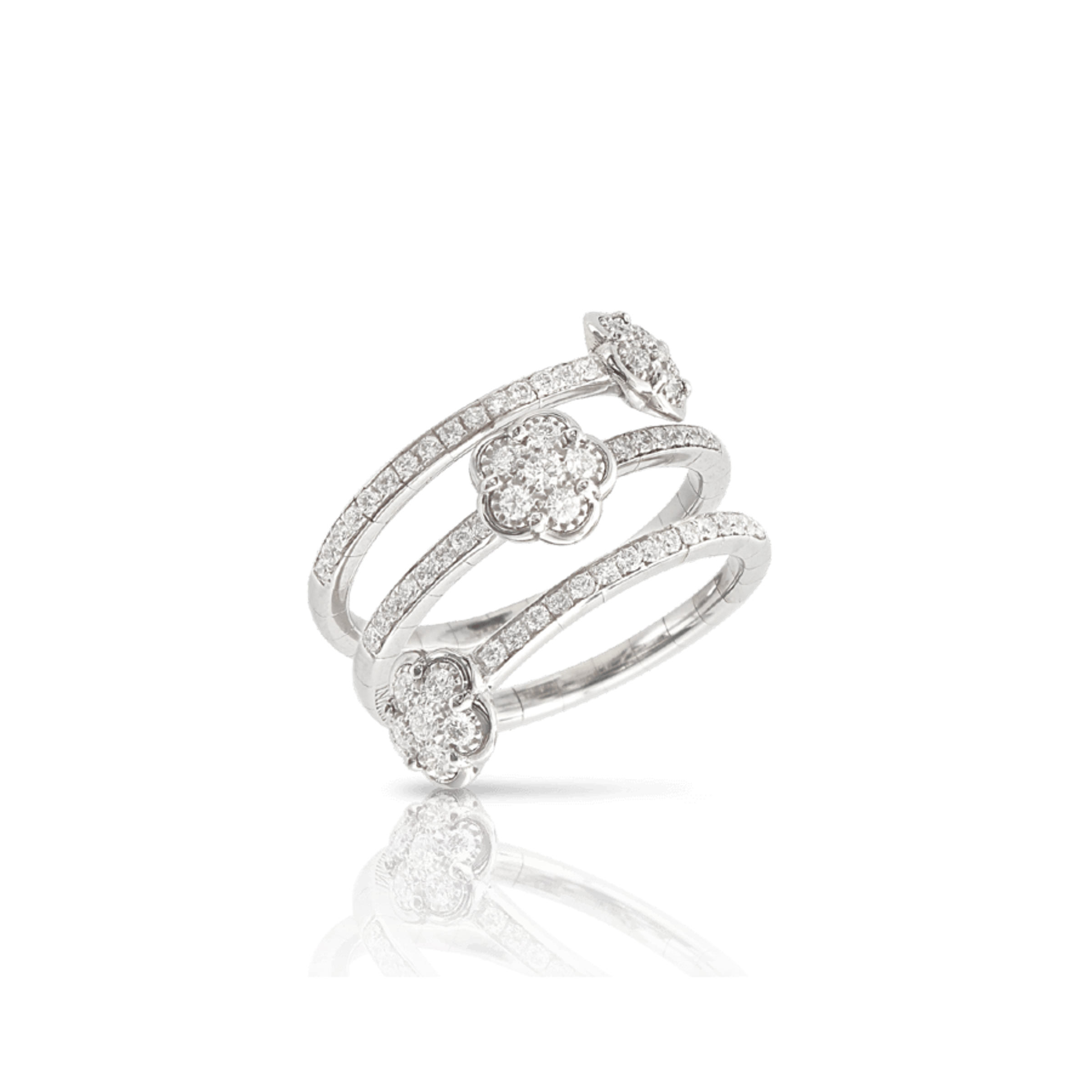 Ring aus 18K Weißgold, Blumen mit einem Durchmesser von 5 mm. Gesamtgewicht der Diamanten - 0,65 ct.