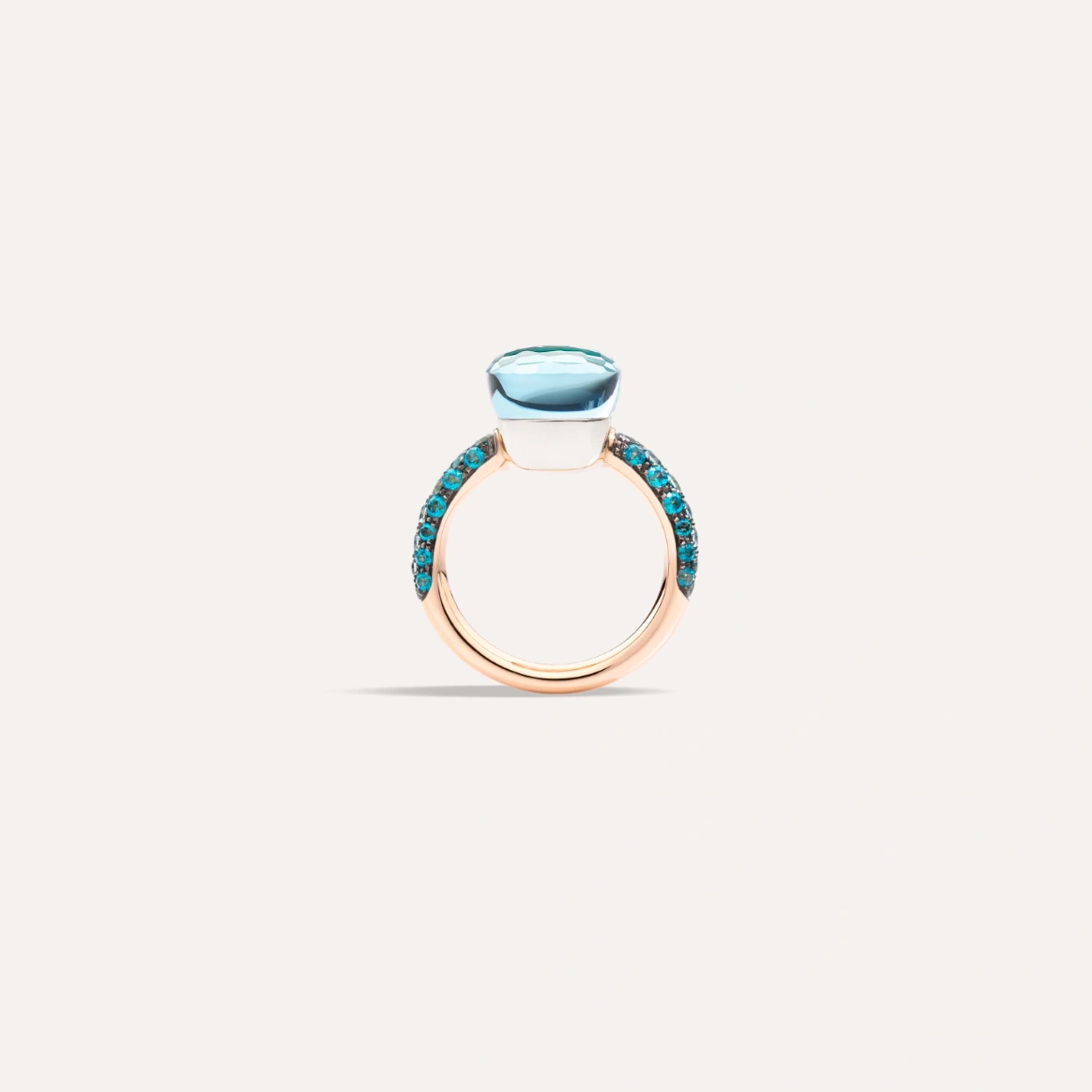 Ring aus 18K Rosé- und Weißgold. Dublett aus himmelblauem Topas und Achat mit einem Gesamtgewicht von 10 ct. Thermaler Topas mit einem Gewicht von 0,5 ct.