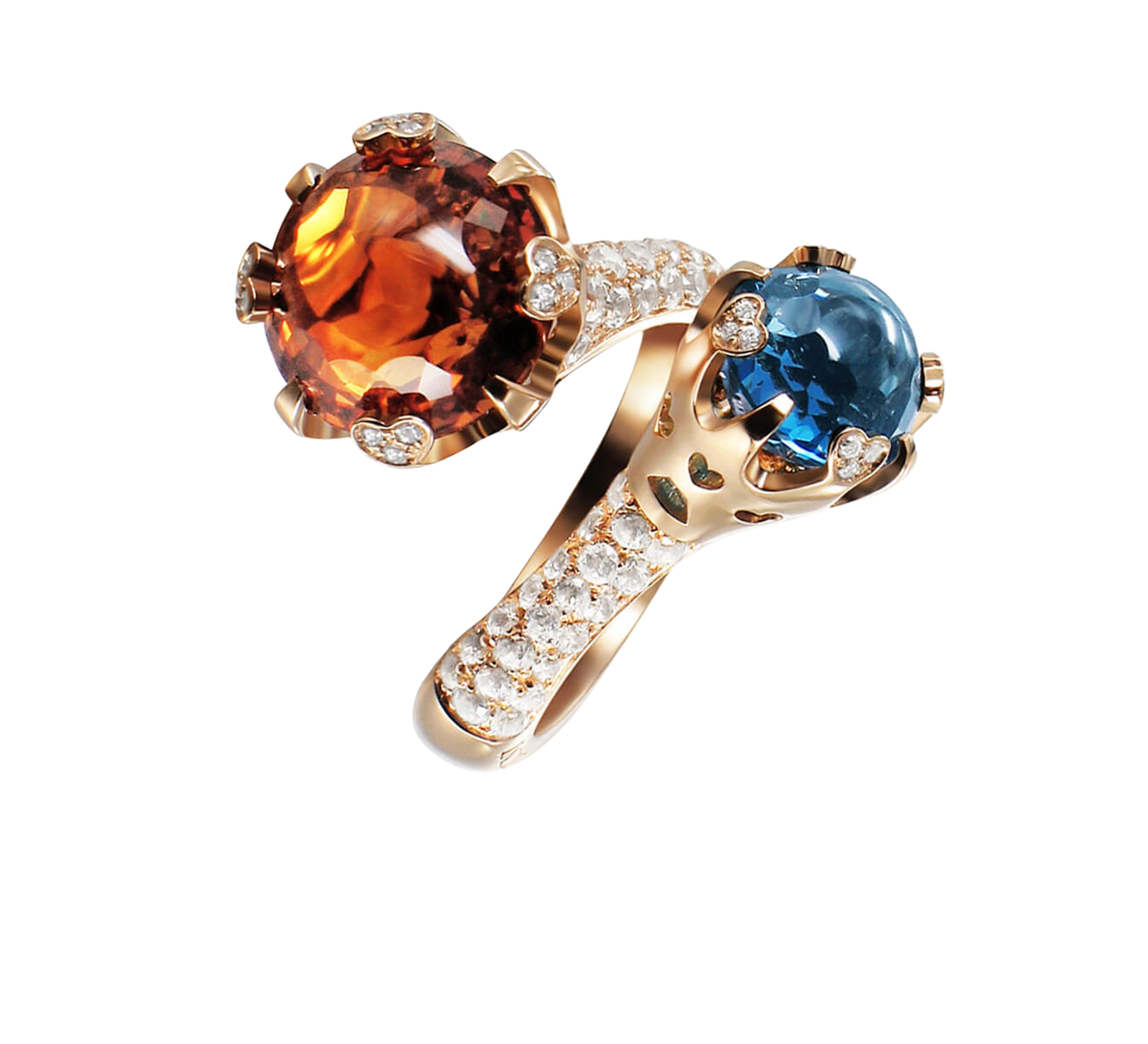 Ring aus 18K Roségold, Madeira-Quarz, London Blue Topas und Diamanten.