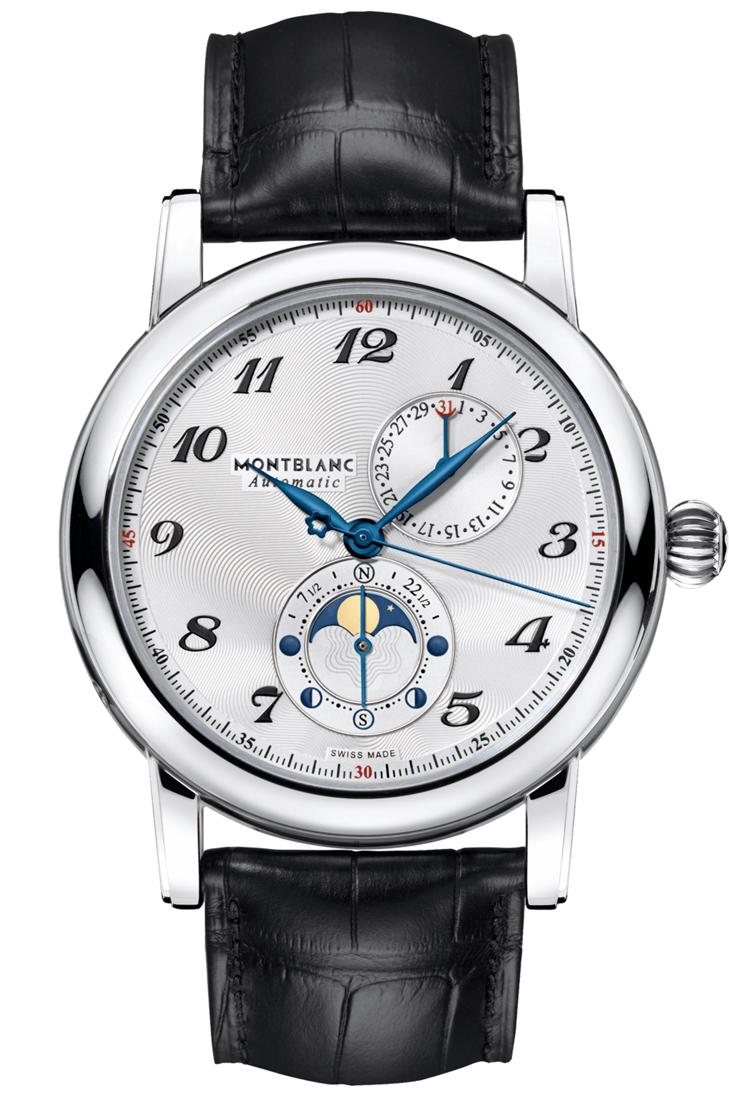 UhrenfunktionenDatum, Stundenzeiger, Mondphase, Minutenzeiger, Große Sekunde