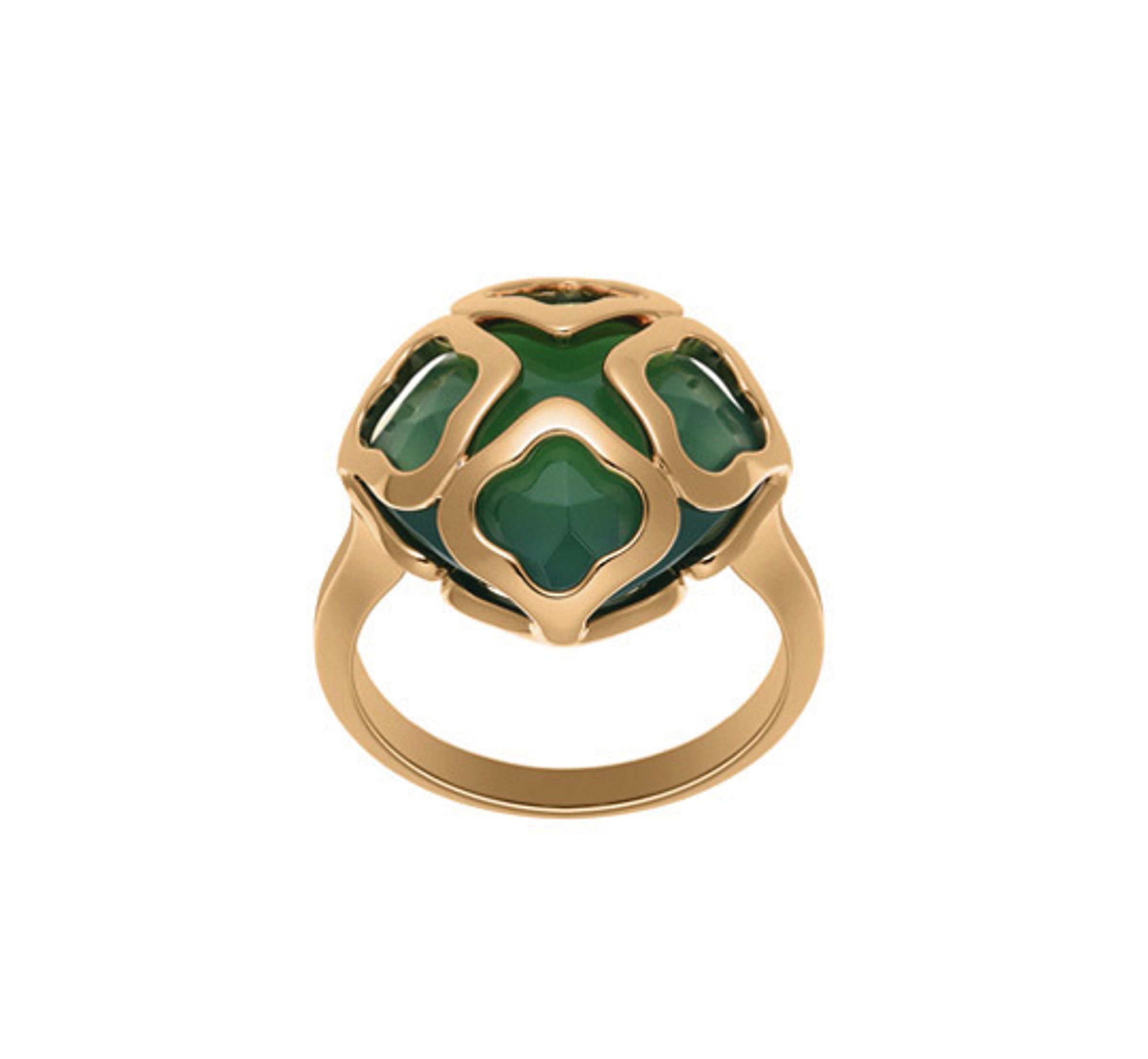 Ring made of 18K rose gold Central stone green chalcedony weighing 7.05 ct.