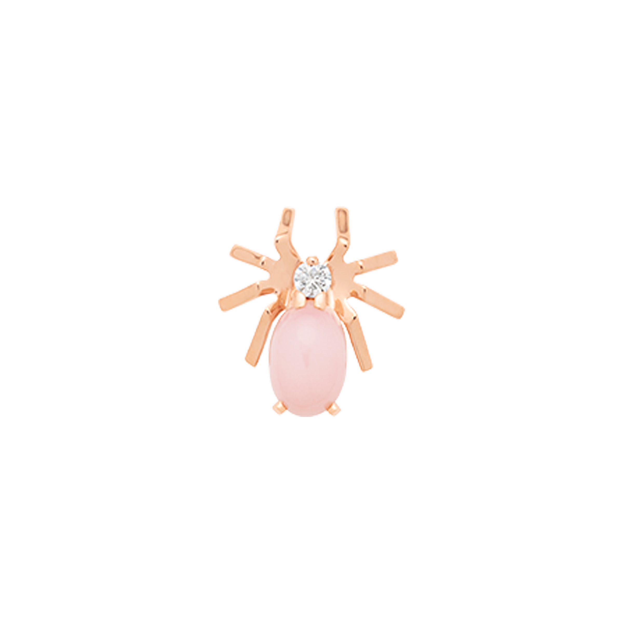 Earrings made of 18K gold featuring a diamond and a pink opal. Sold individually.