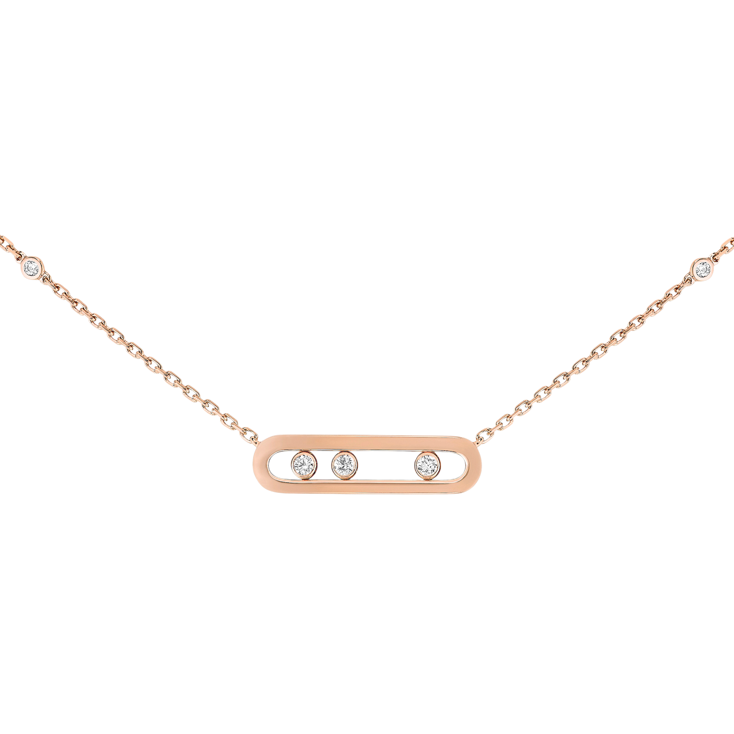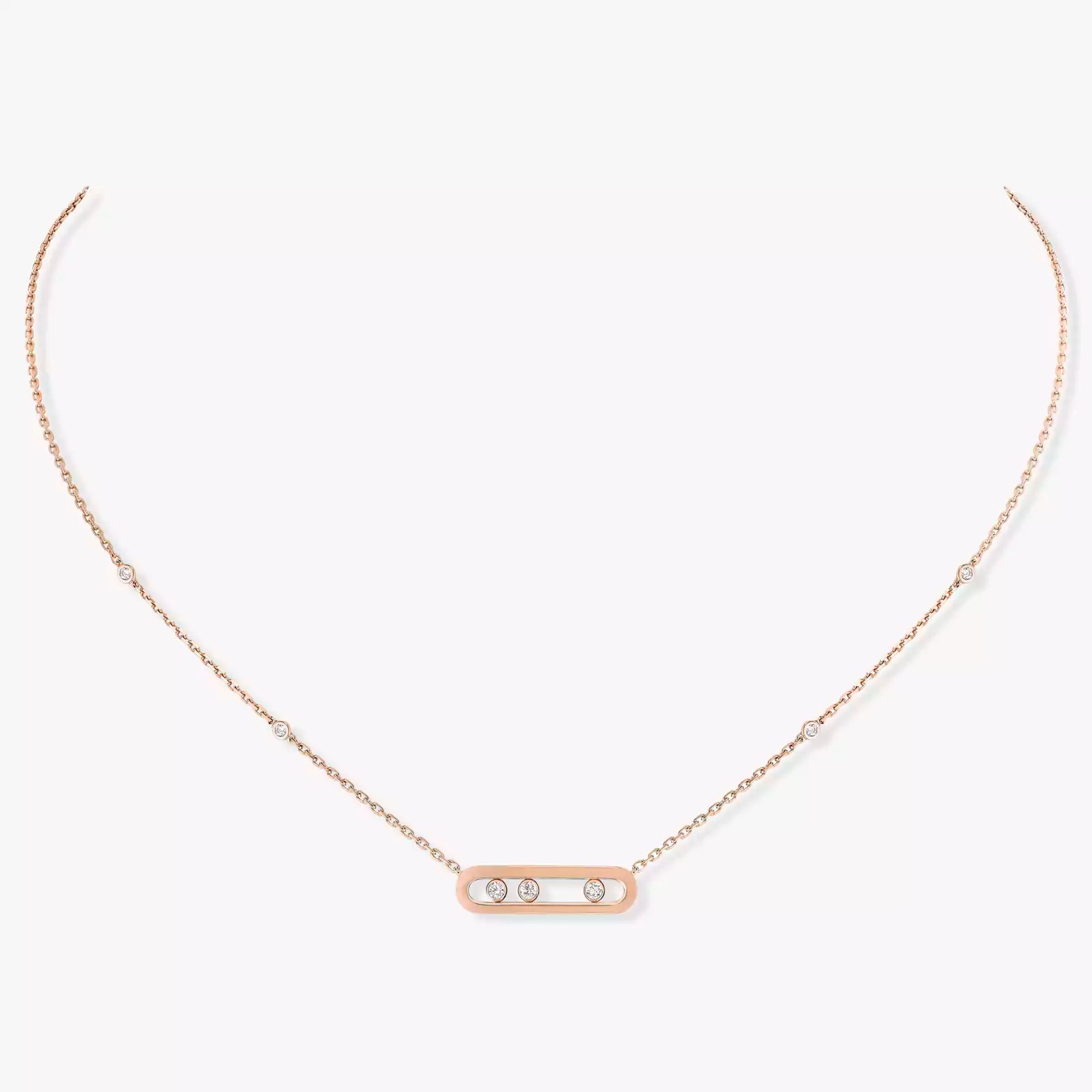 Necklace made of 18K rose gold. The total weight of the diamonds is 0.15 carats, quality G/VS. Chain length: 45 cm (adjustable). Pattern length: 20 mm. Pattern width: 5 mm.