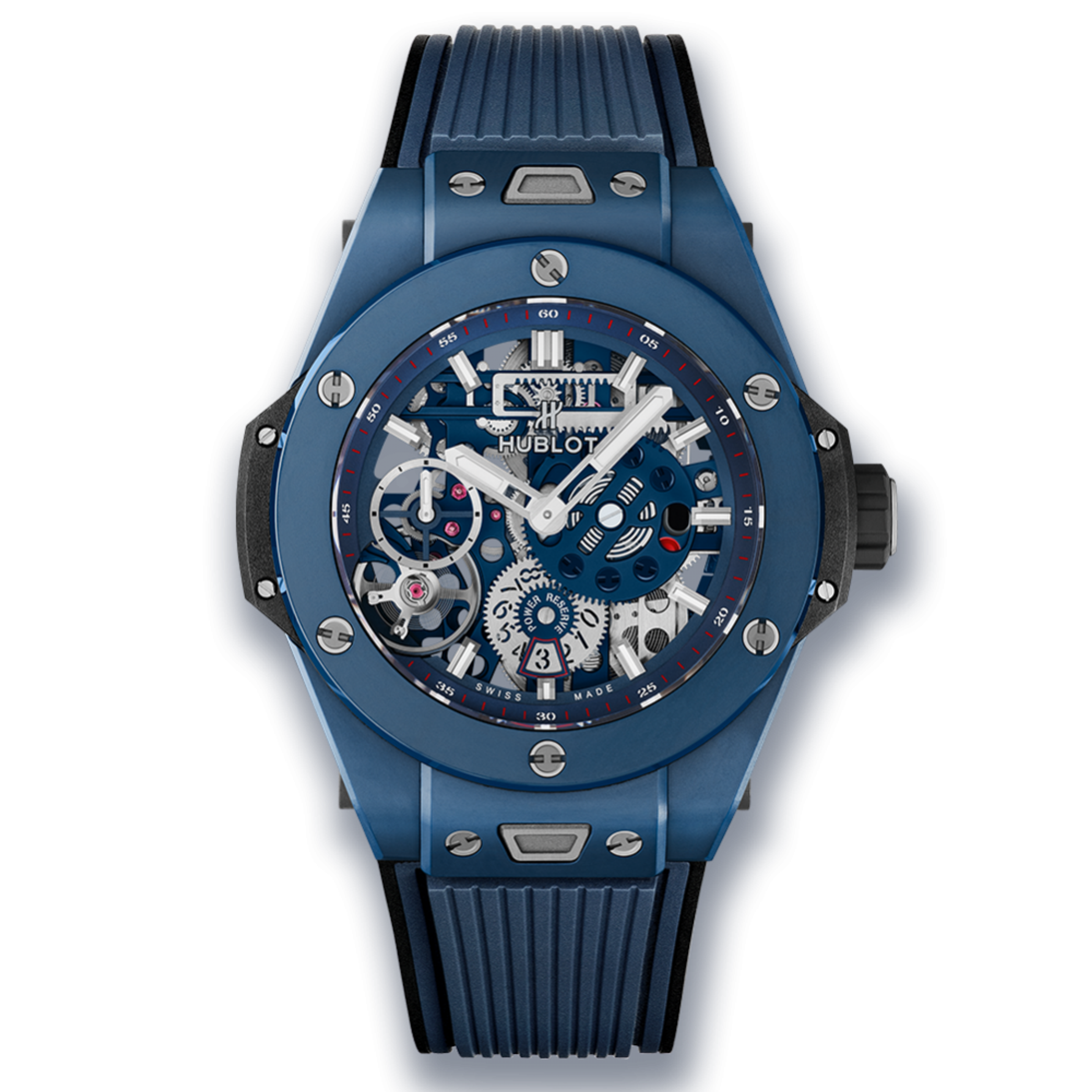 Men's mechanical watch Hublot with manual winding, case - ceramic, 45 mm. Strap - rubber.