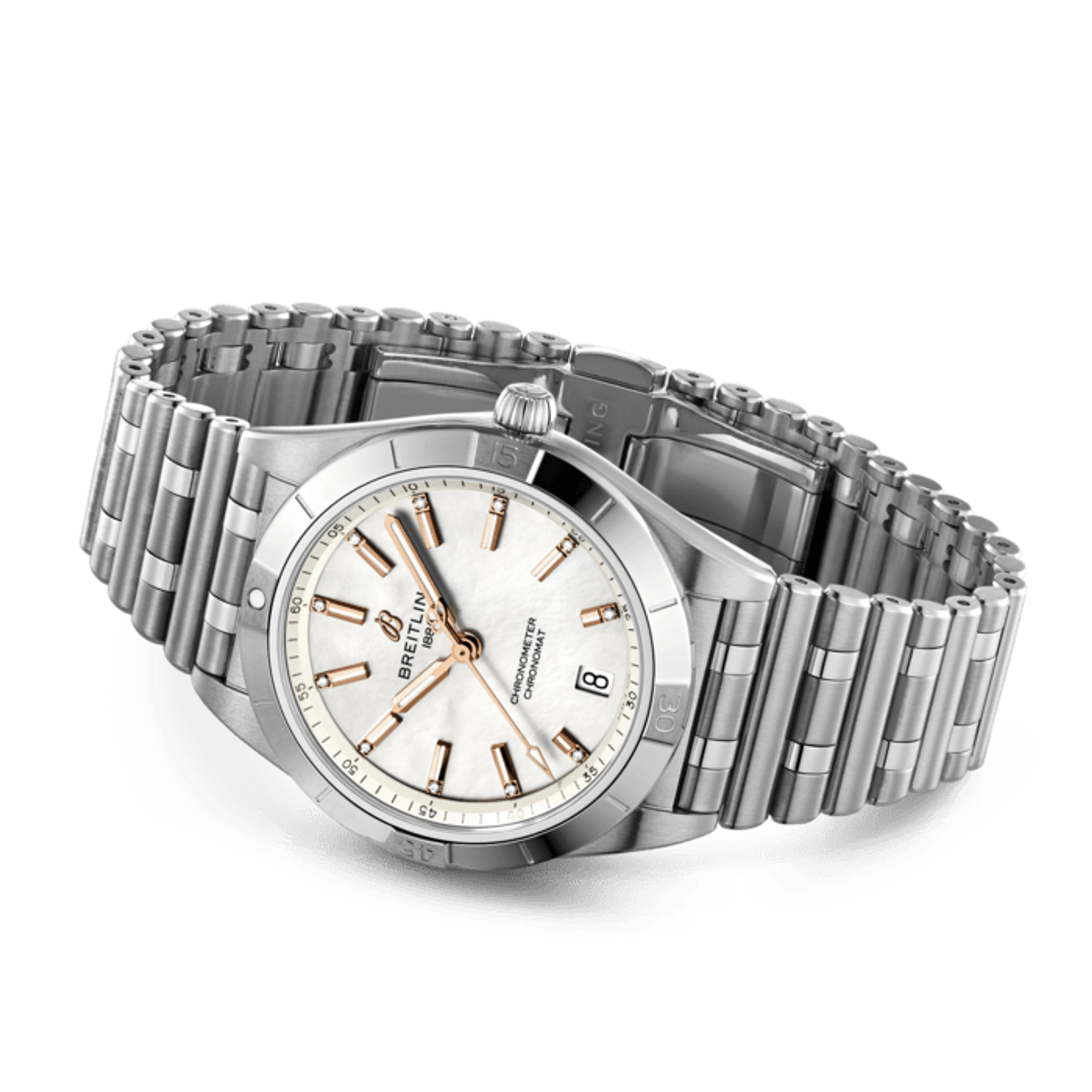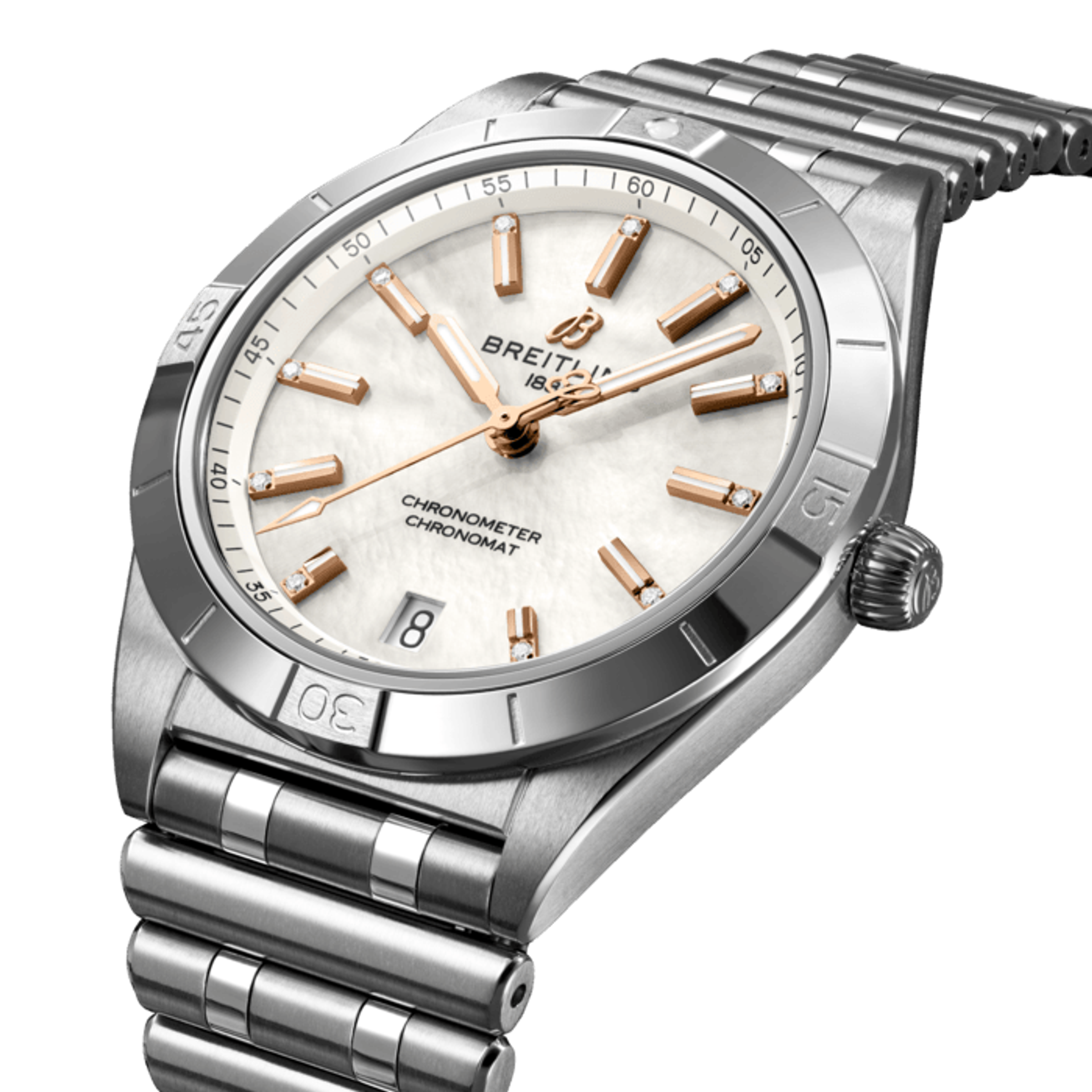Ladies' automatic watch, case - steel, 36 mm. Bracelet - steel. Dial - mother-of-pearl.