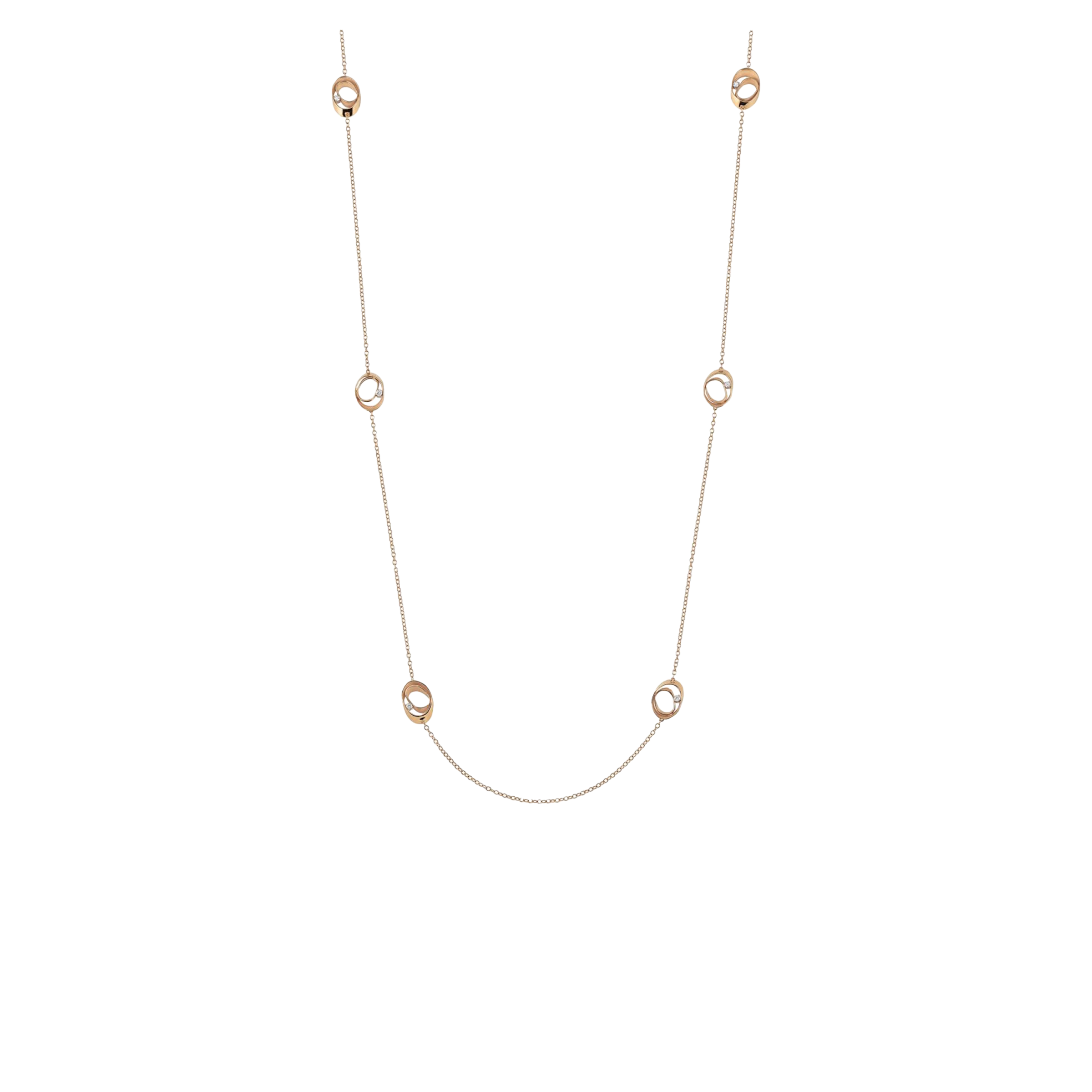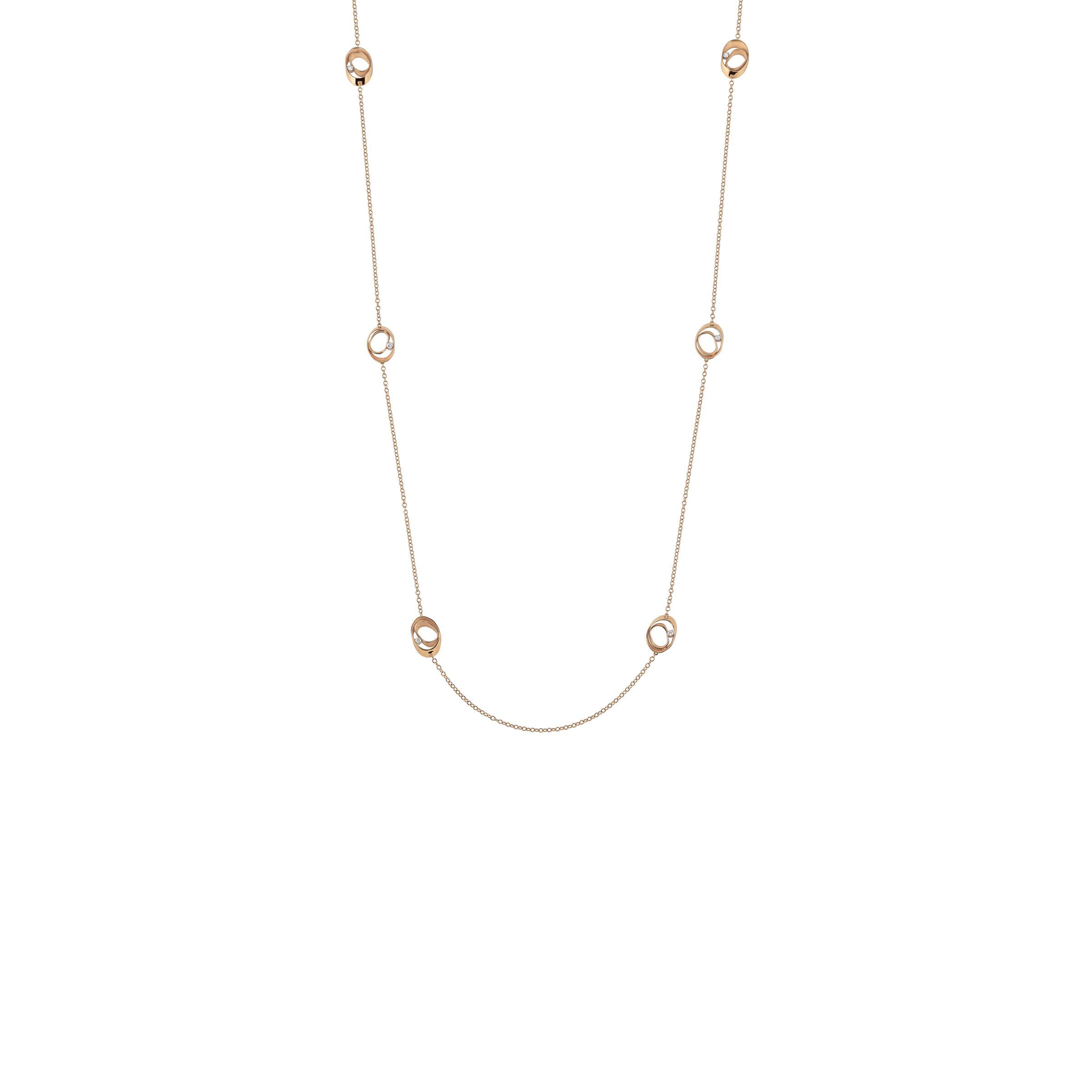 Necklace made of 18K gold, special shade - Orange Apricot Gold. Length 100 cm. Total diamond weight - 0.72 ct.