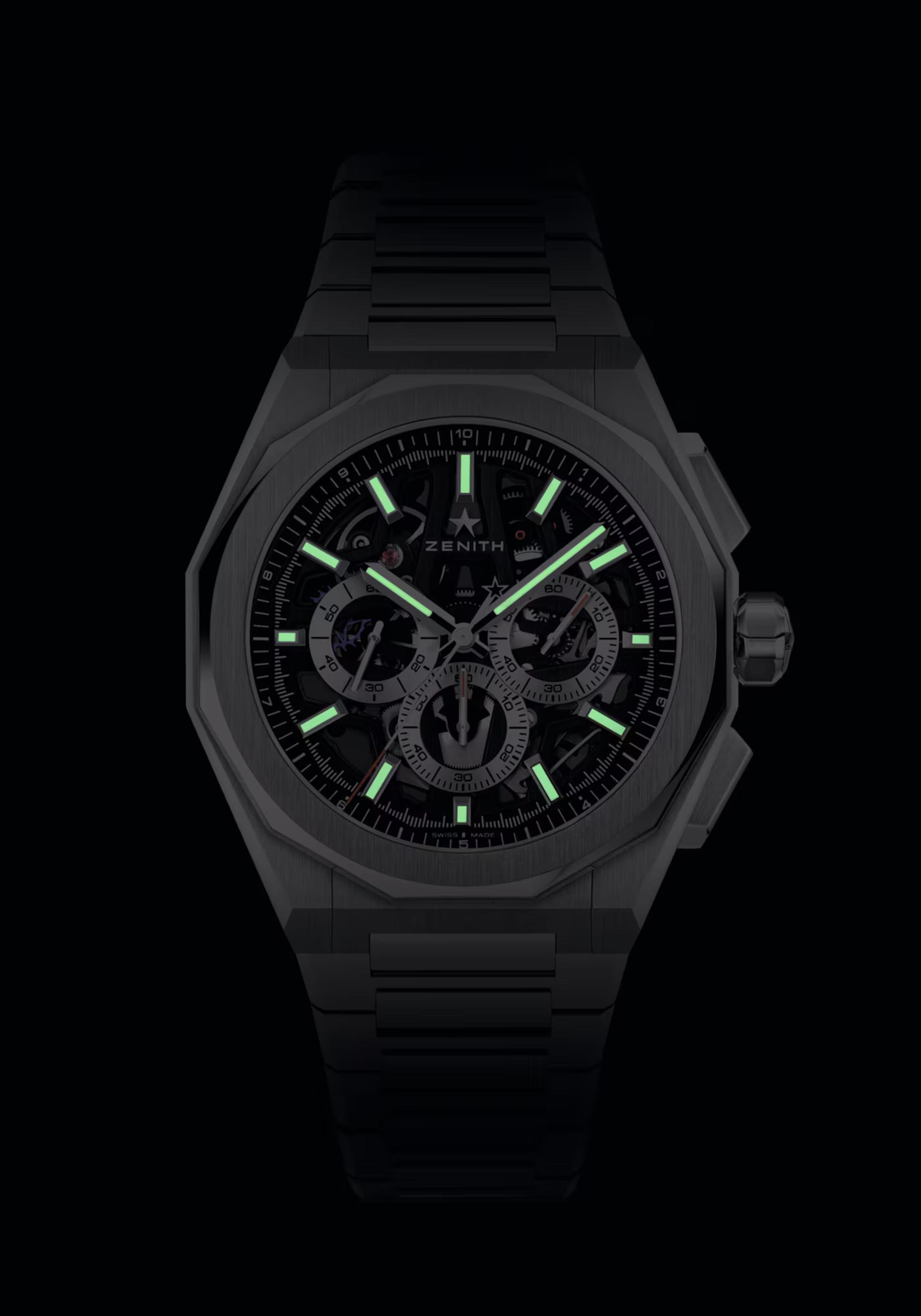 Watch featuresChronograph, first 1/10 second indicator, Luminescent numbers/indexes