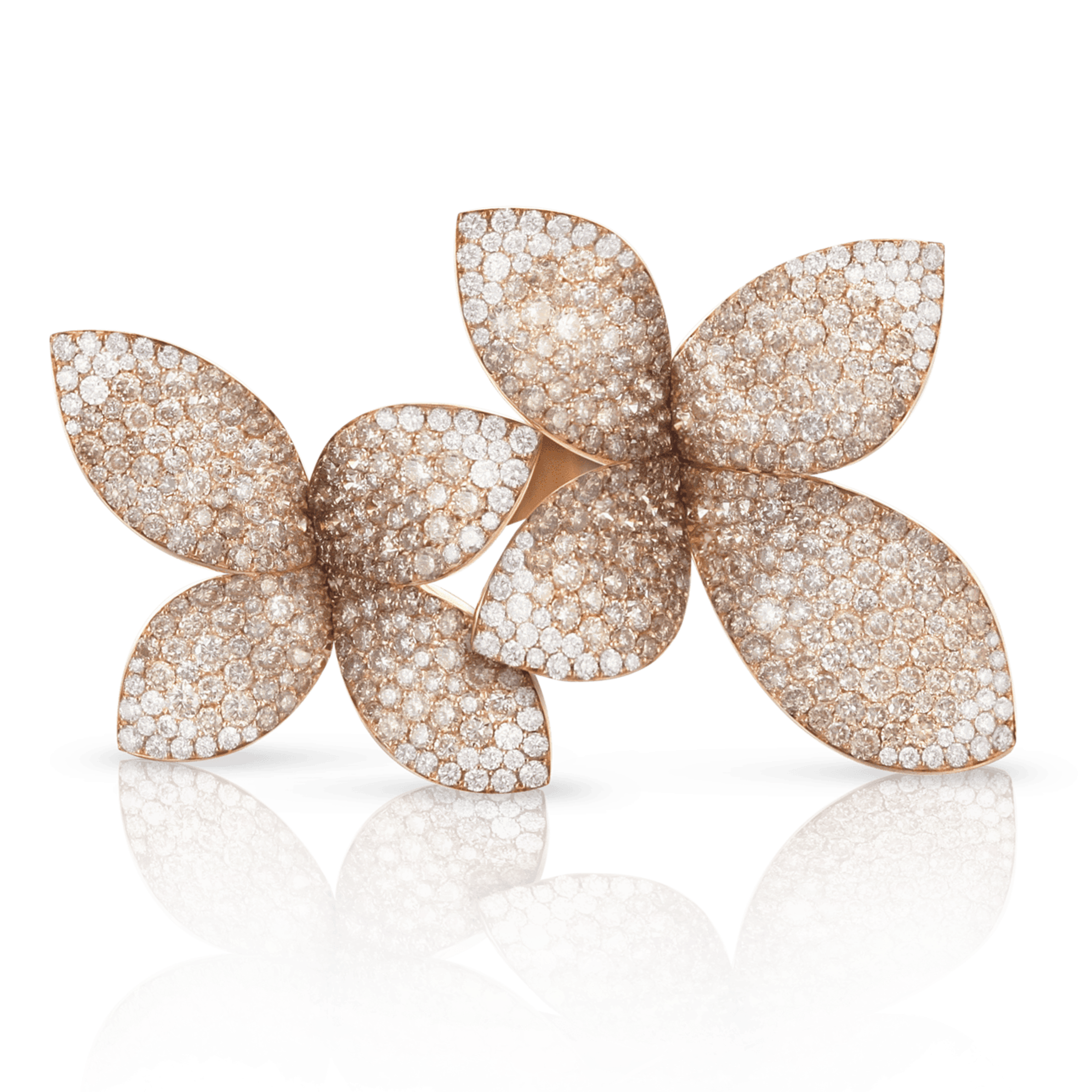 Ring in 18K rose gold, diamonds: white - 0.87 ct, champagne - 4.95 ct.