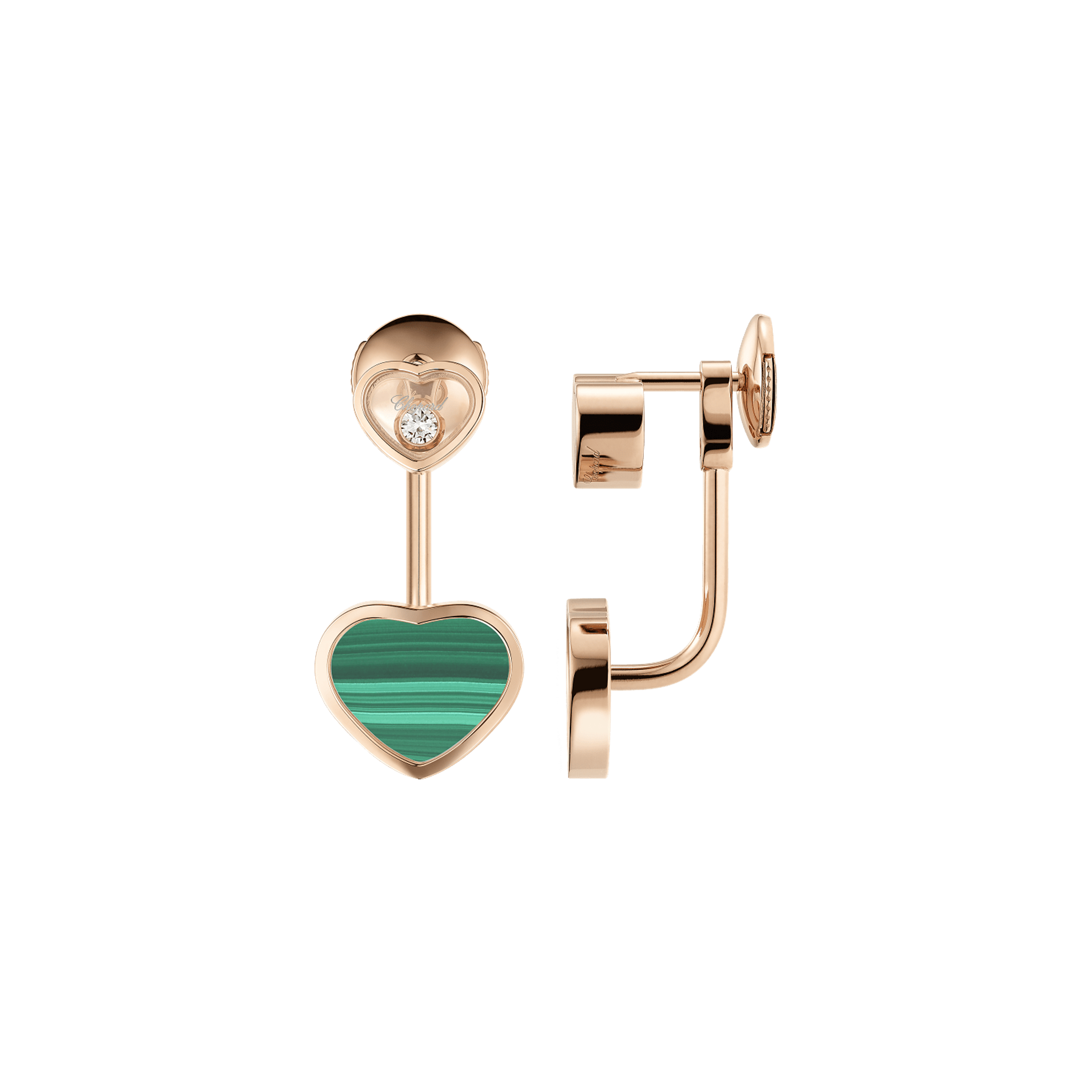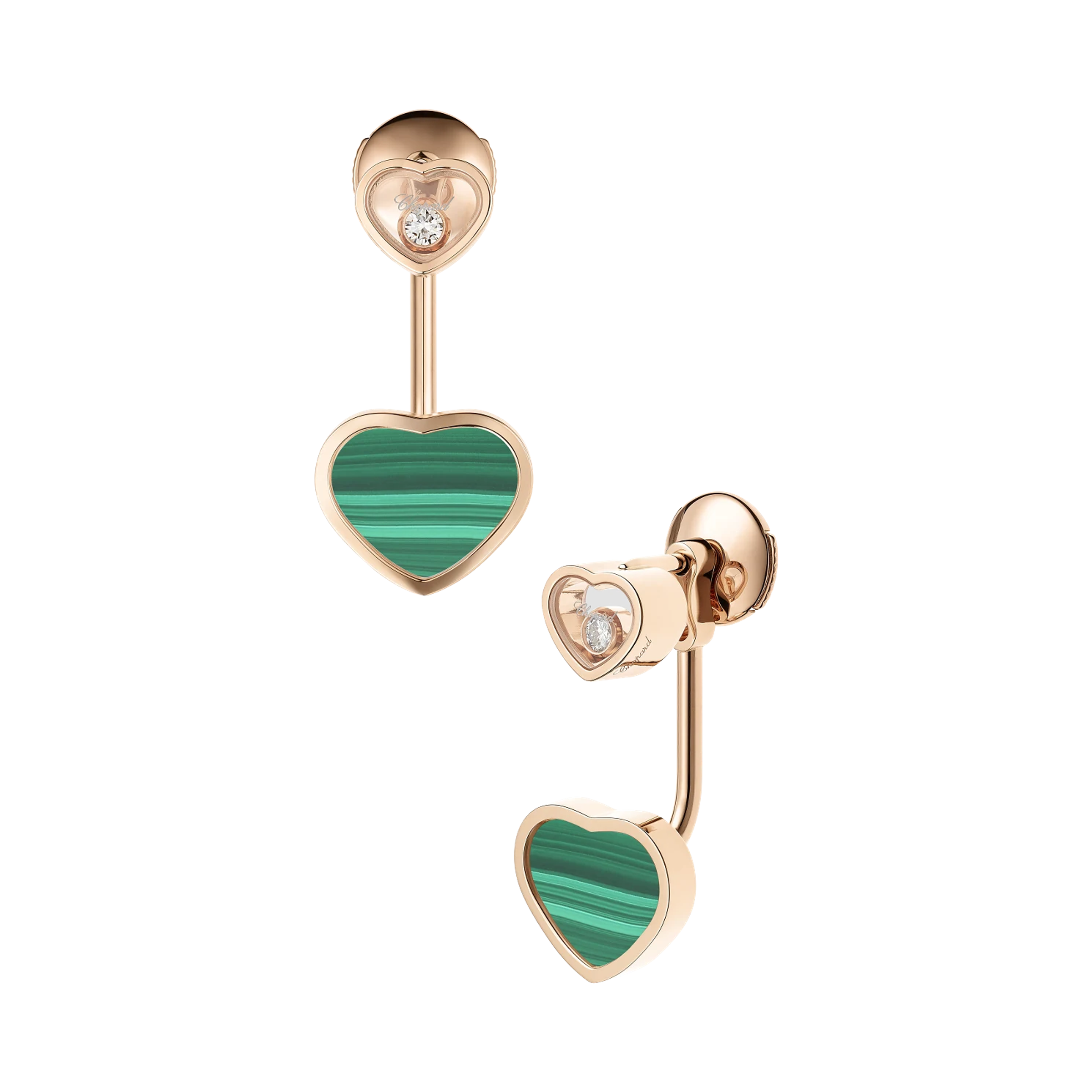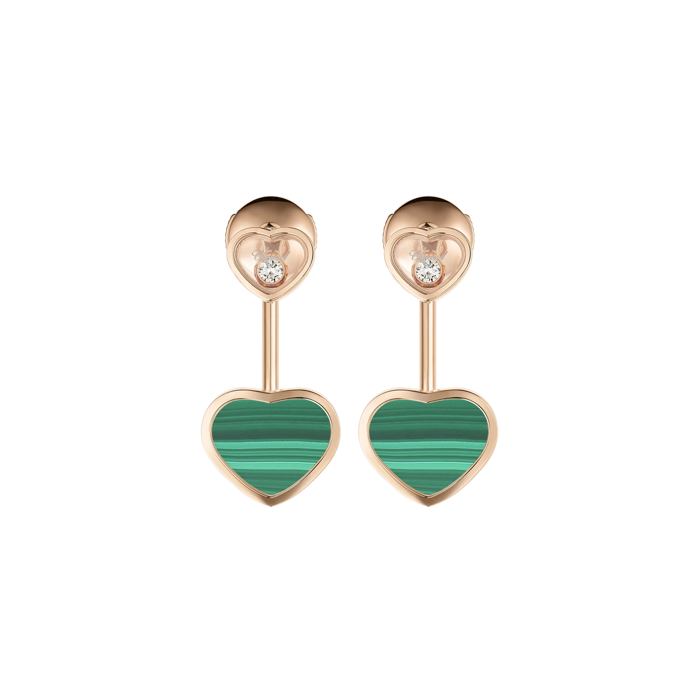 Earrings made of 18K rose gold Total diamond weight 0.10 ct Central stone - malachite
