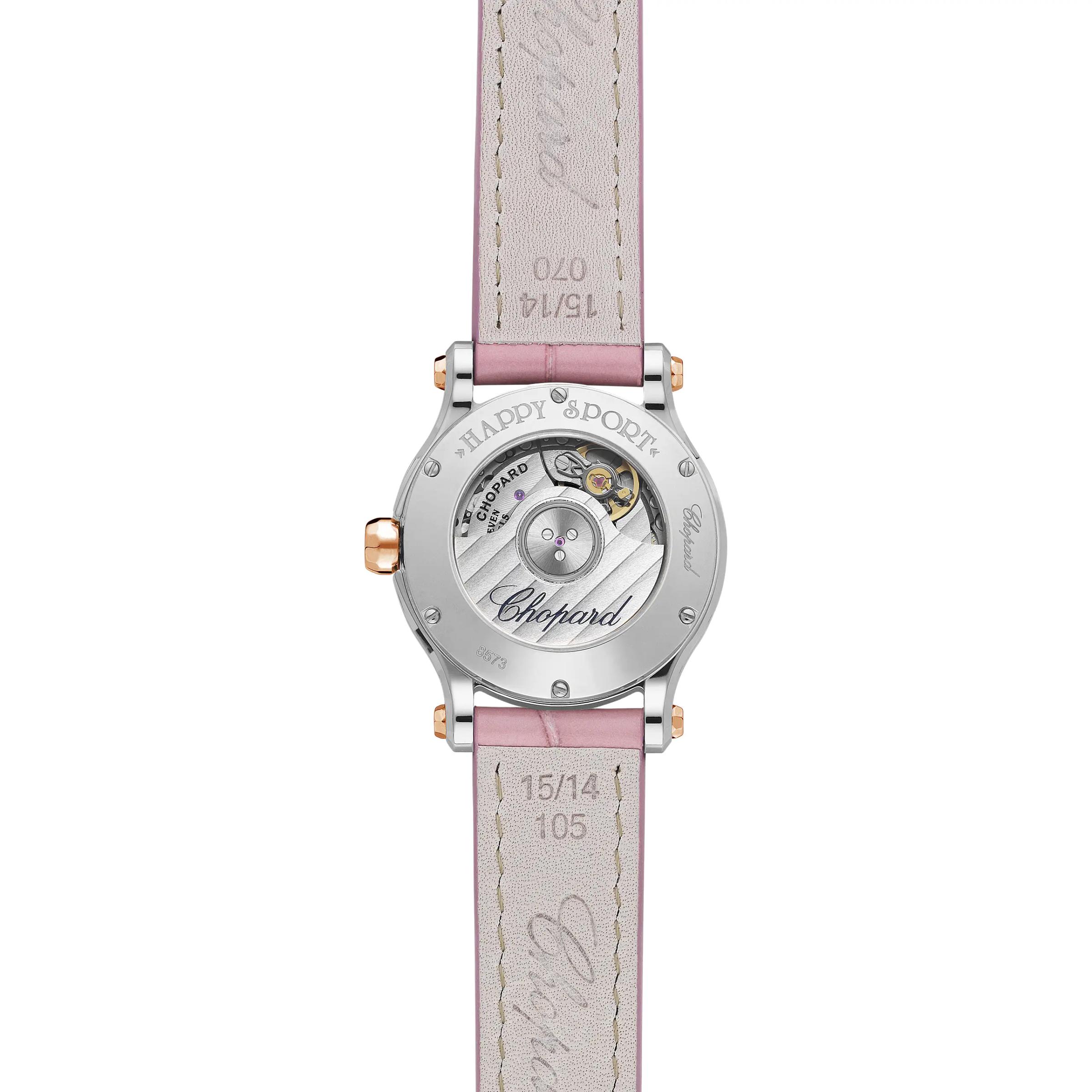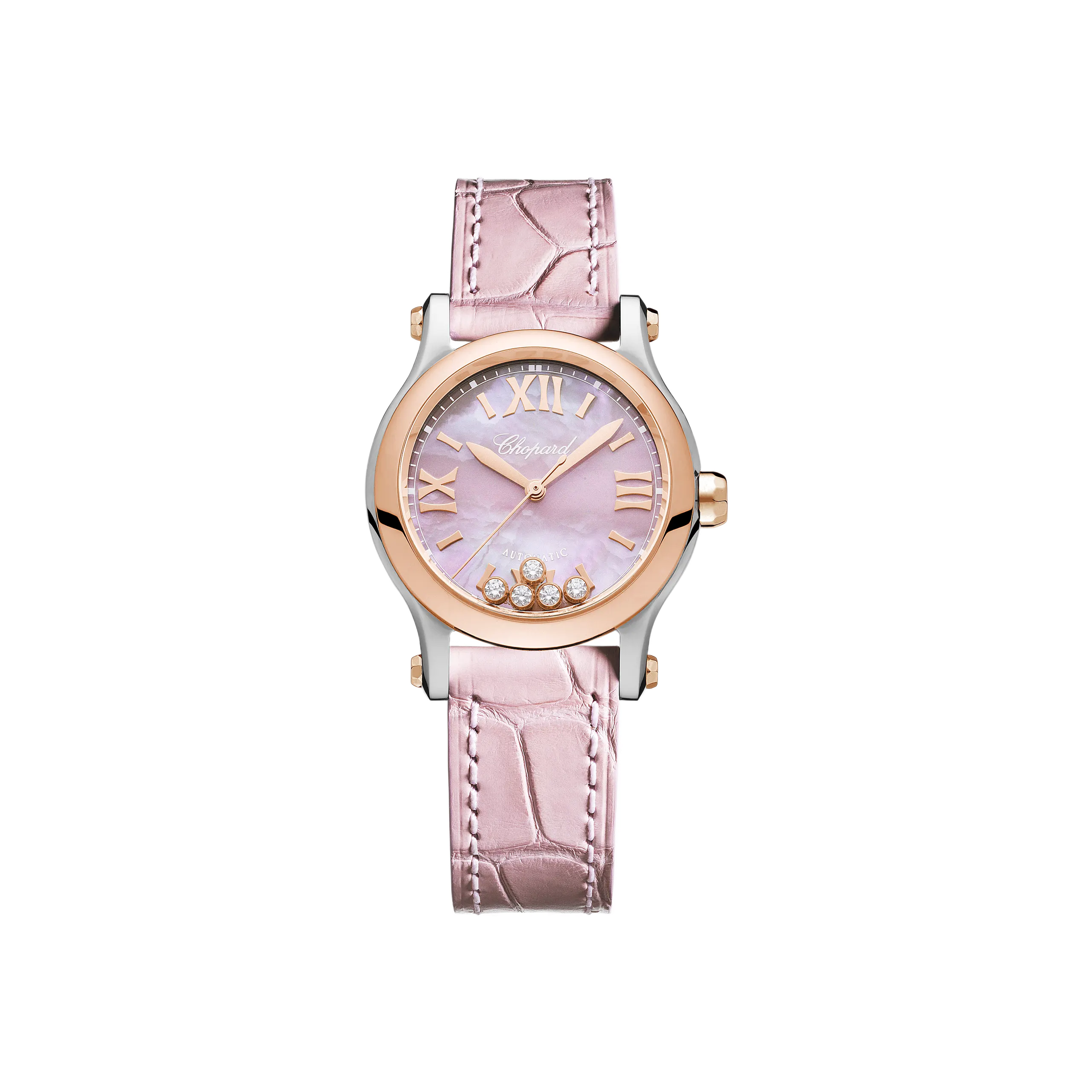 Ladies' automatic watch, case - steel / 18K rose gold Strap - alligator Dial - pink mother-of-pearl Total diamond weight (5 pieces) - 0.14 ct 1 sapphire - 0.09 ct (crown)