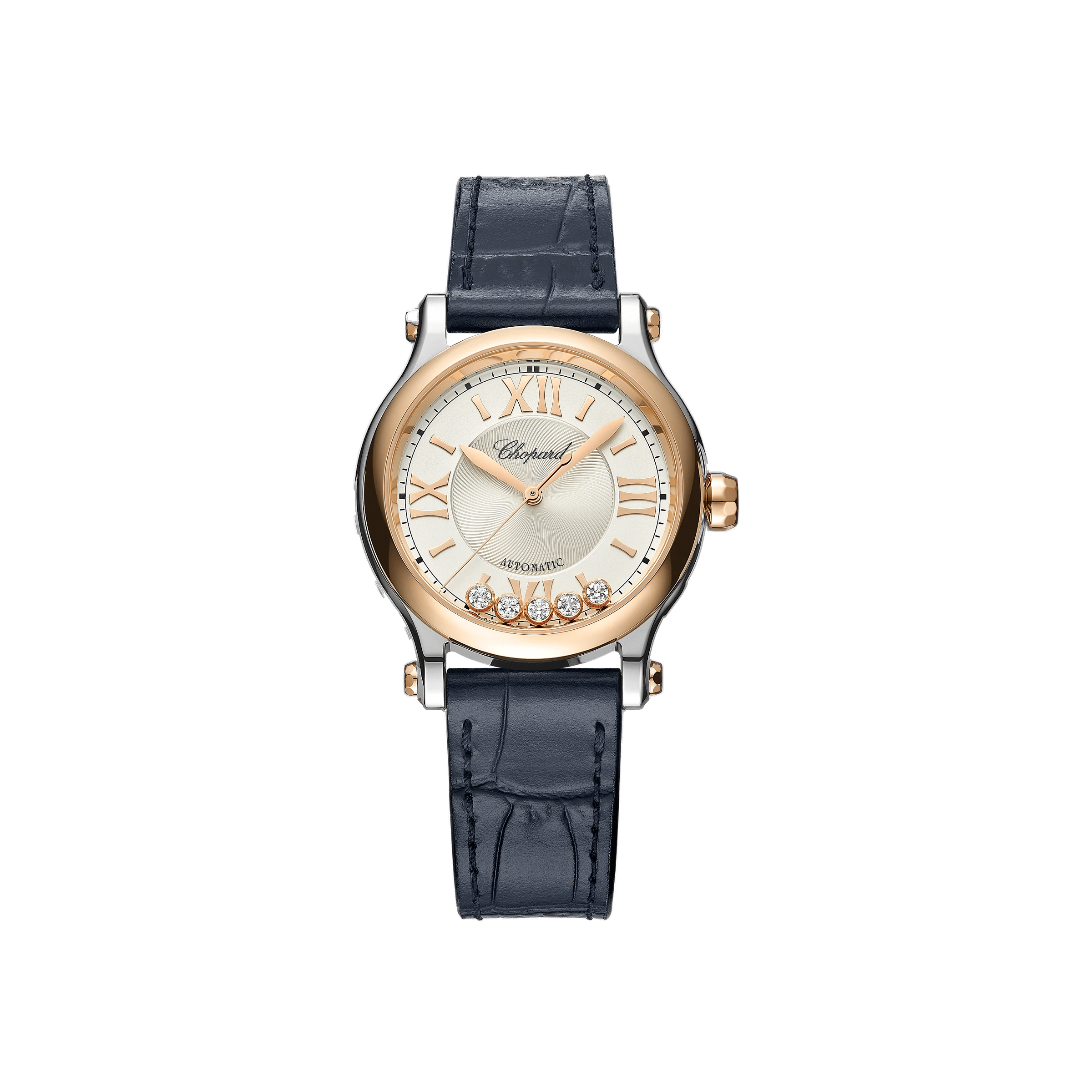 Ladies' automatic watch, case - steel/18K rose gold, 33 mm Strap - alligator Dial - moving diamonds weighing 0.25 ct 1 sapphire - 0.13 ct (crown)