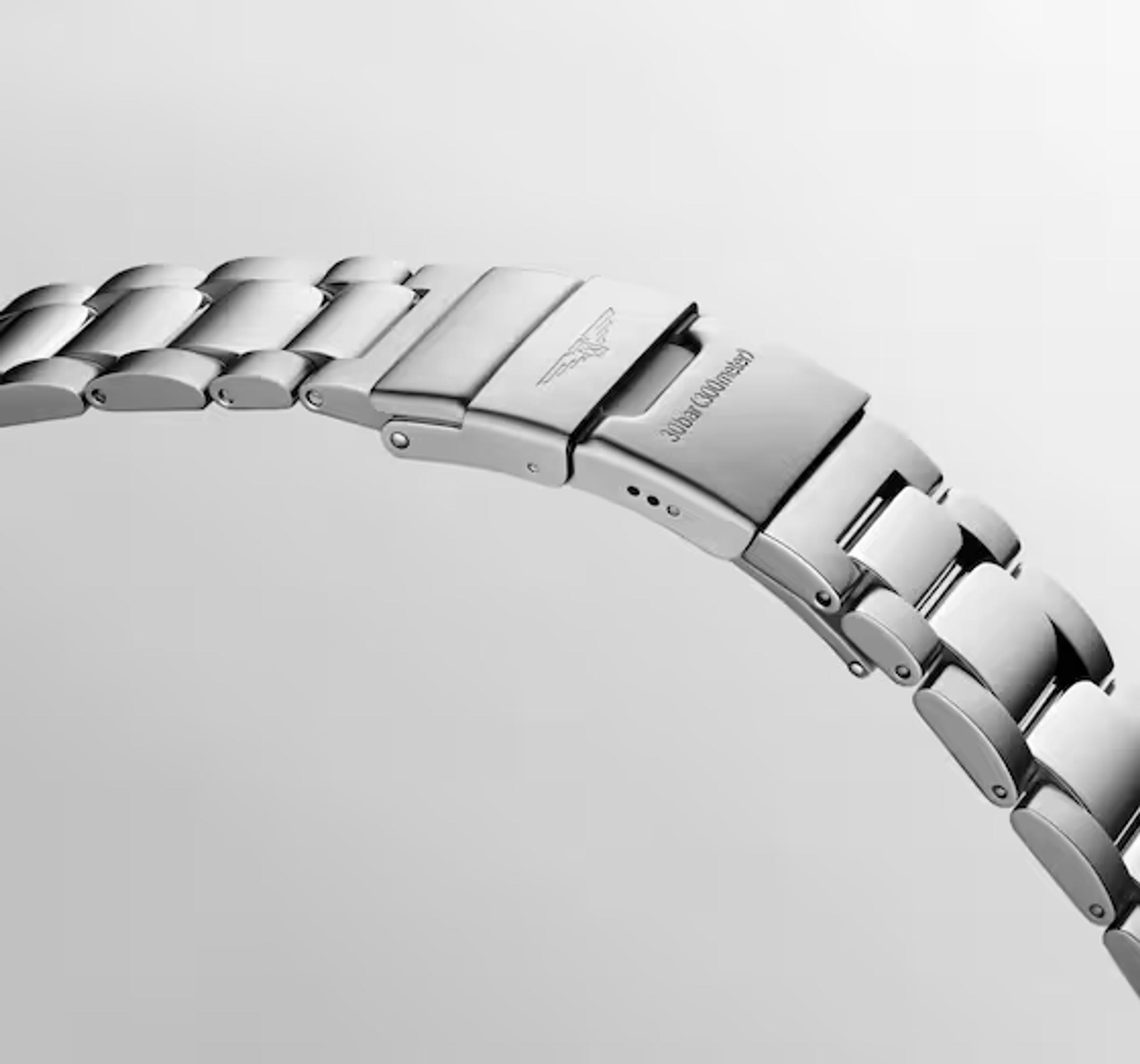 Men's Longines watch with automatic movement, case – steel, bezel – ceramic, 41 mm. Bracelet – steel, clasp with double safety folding buckle.
