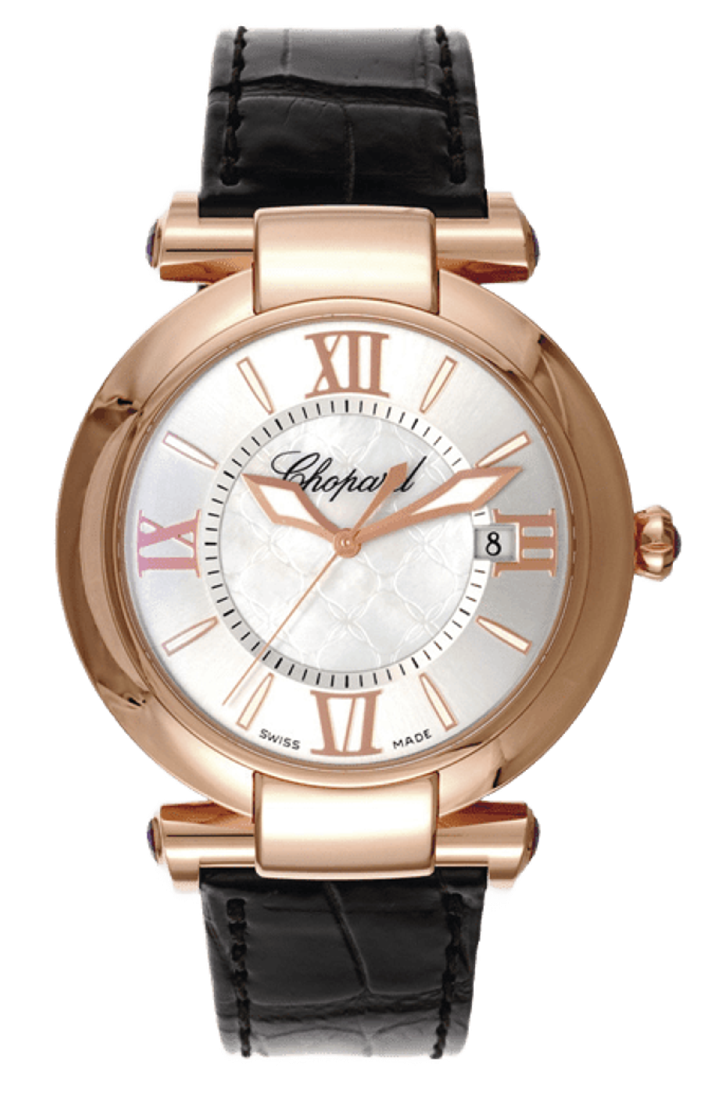 Ladies' automatic watch, case - 18K rose gold, 40 mm Strap - alligator Total weight of amethysts (5 pcs) - 0.75 ct