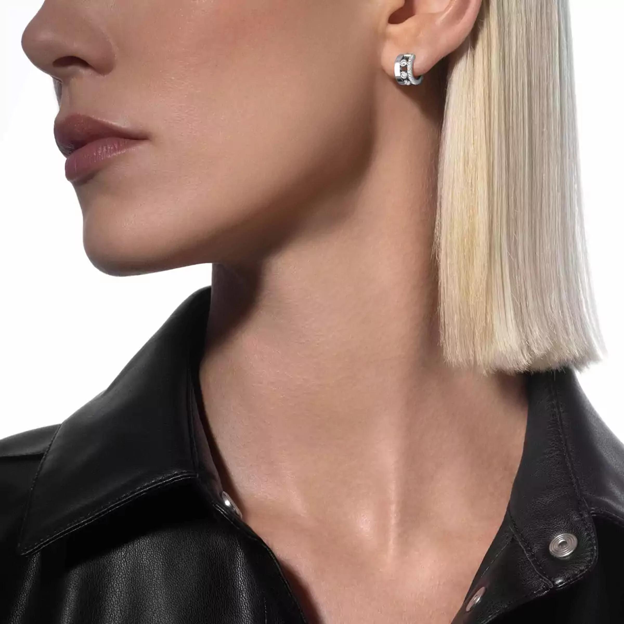 Small circular earrings made of 18K white gold. The total diamond weight is 0.29 carats, quality G/VS. The width is 10 mm.
