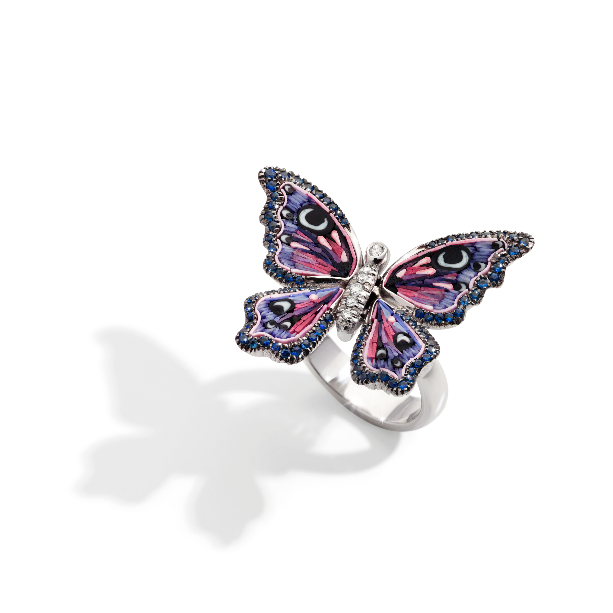 Ladies' ring made of 18K white gold. Total weight: diamonds - 0.08 ct and blue sapphires - 0.55 ct.