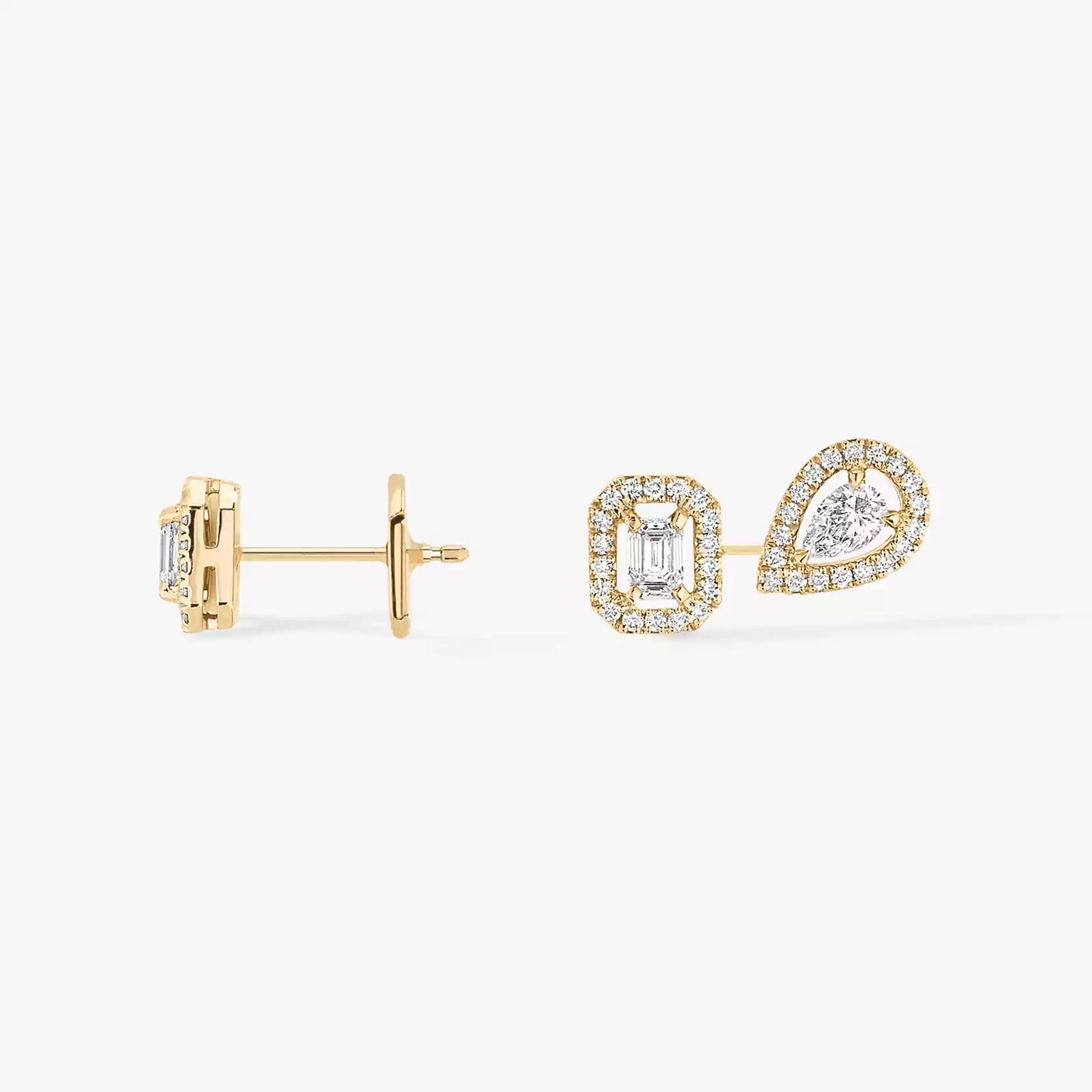Earrings made of 18K yellow gold. Weight of the central stones: 0.10 carats each, quality F/VS. Total diamond weight: 0.45 carats, quality FG/VS.