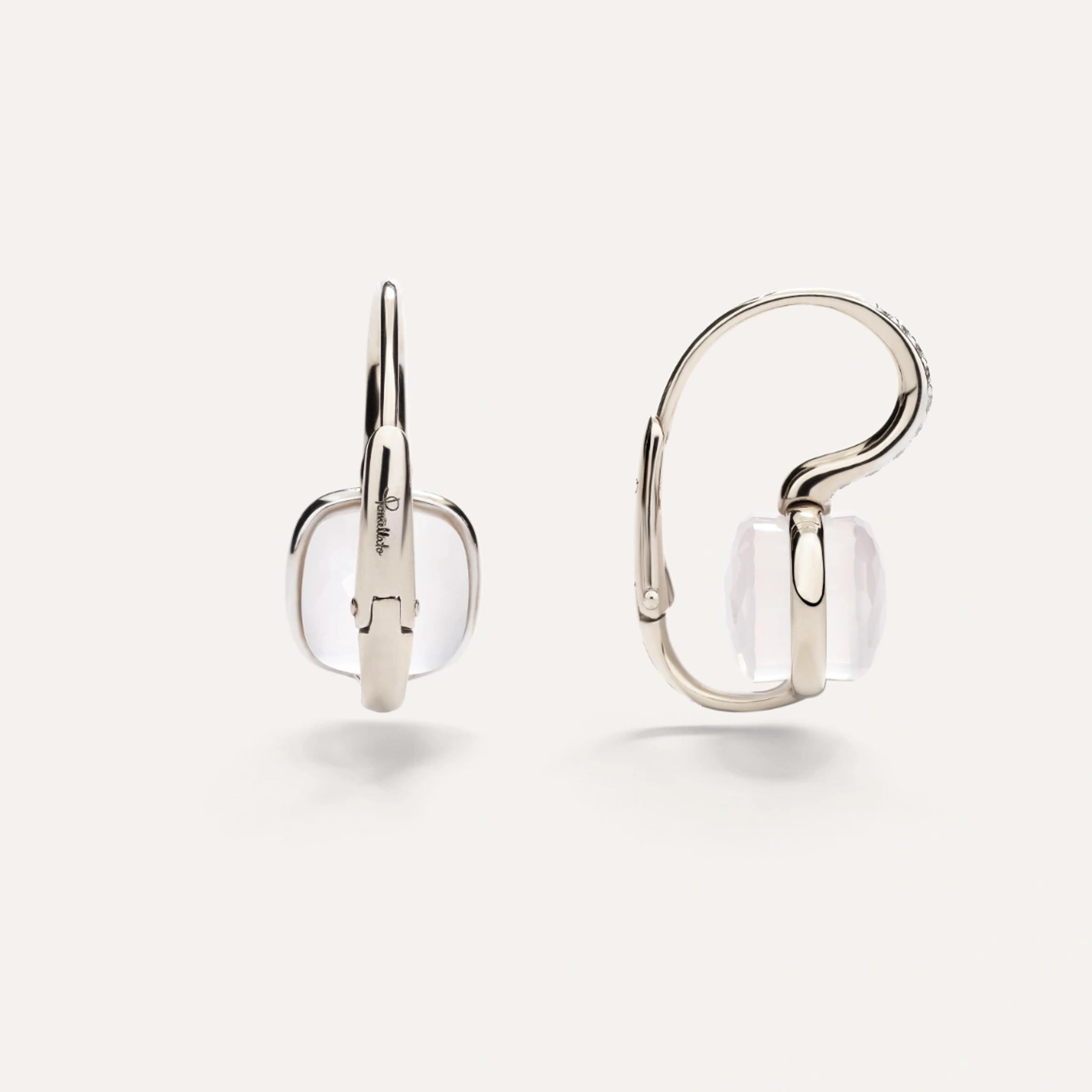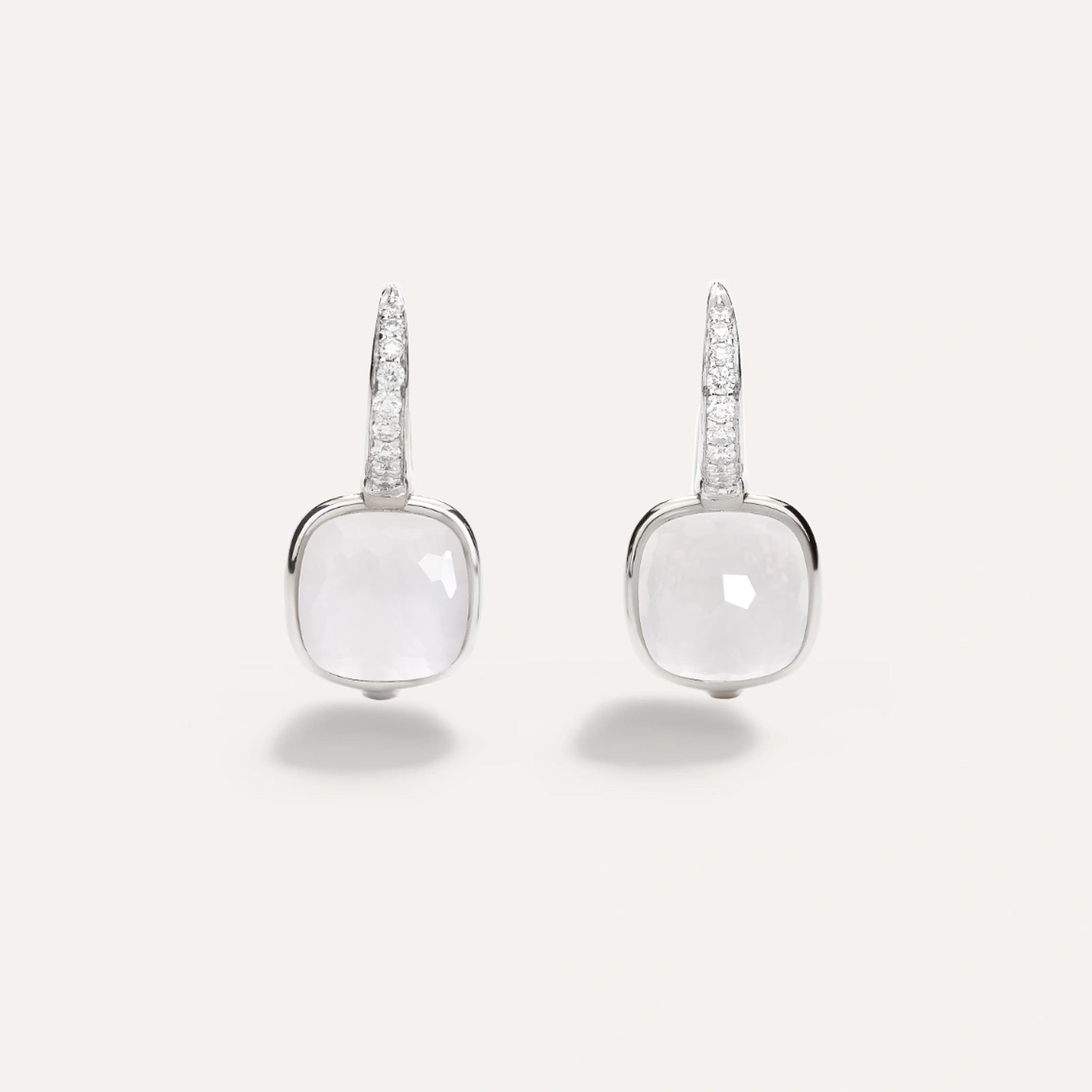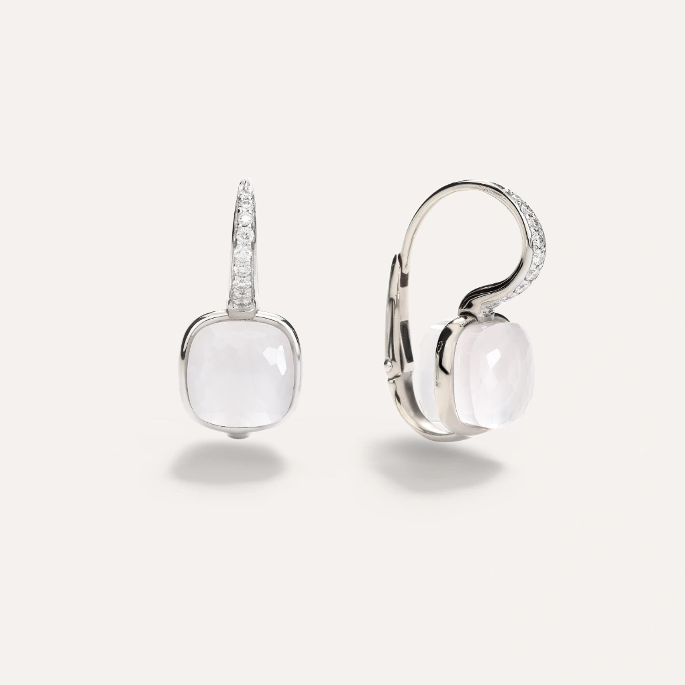 Earrings made of 18K white gold. Milky quartz (2 pieces) with a total weight of 11.8 ct. Total weight of diamonds – 0.2 ct.