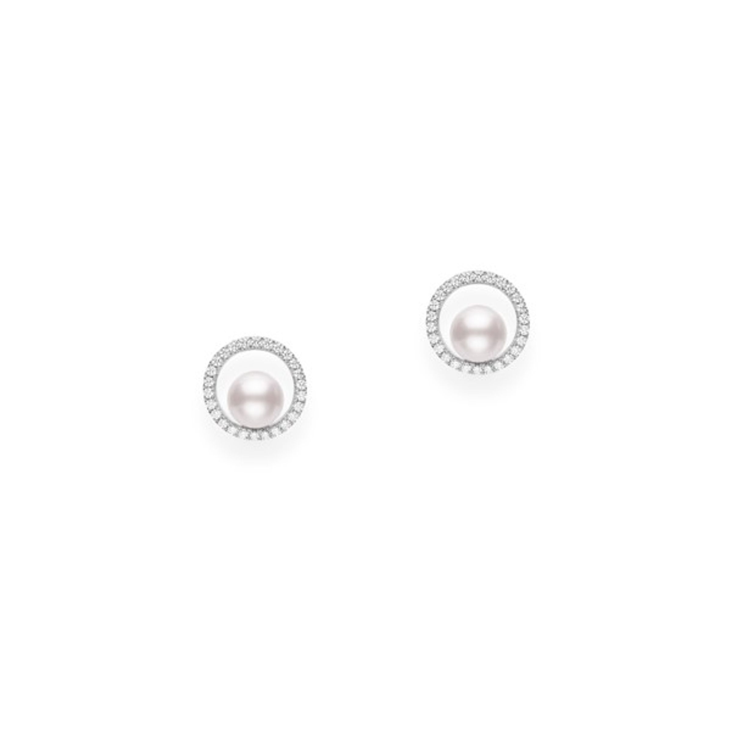 Earrings made of 18K white gold. Akoya pearls measuring 6 mm. Total diamond weight is 0.26 ct.