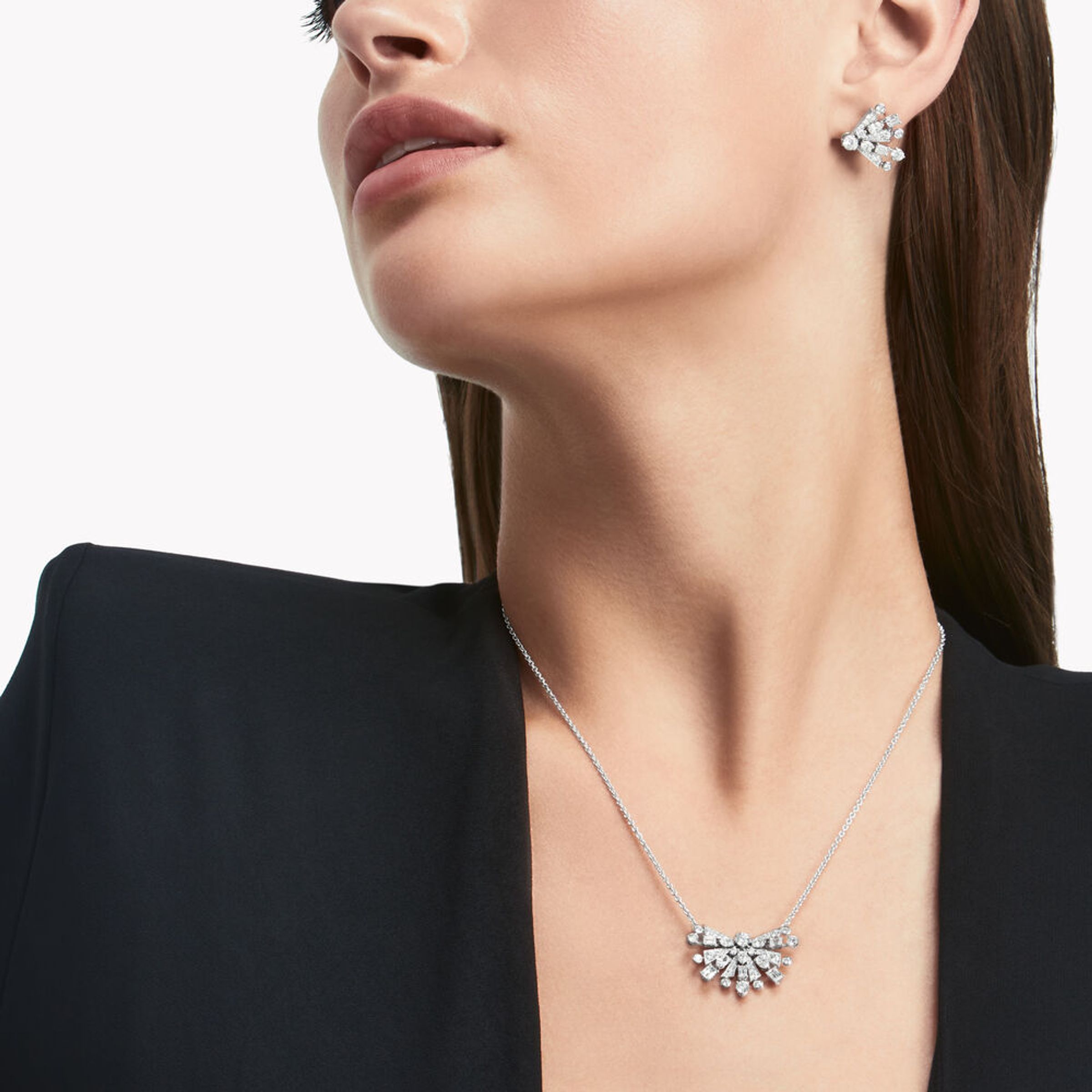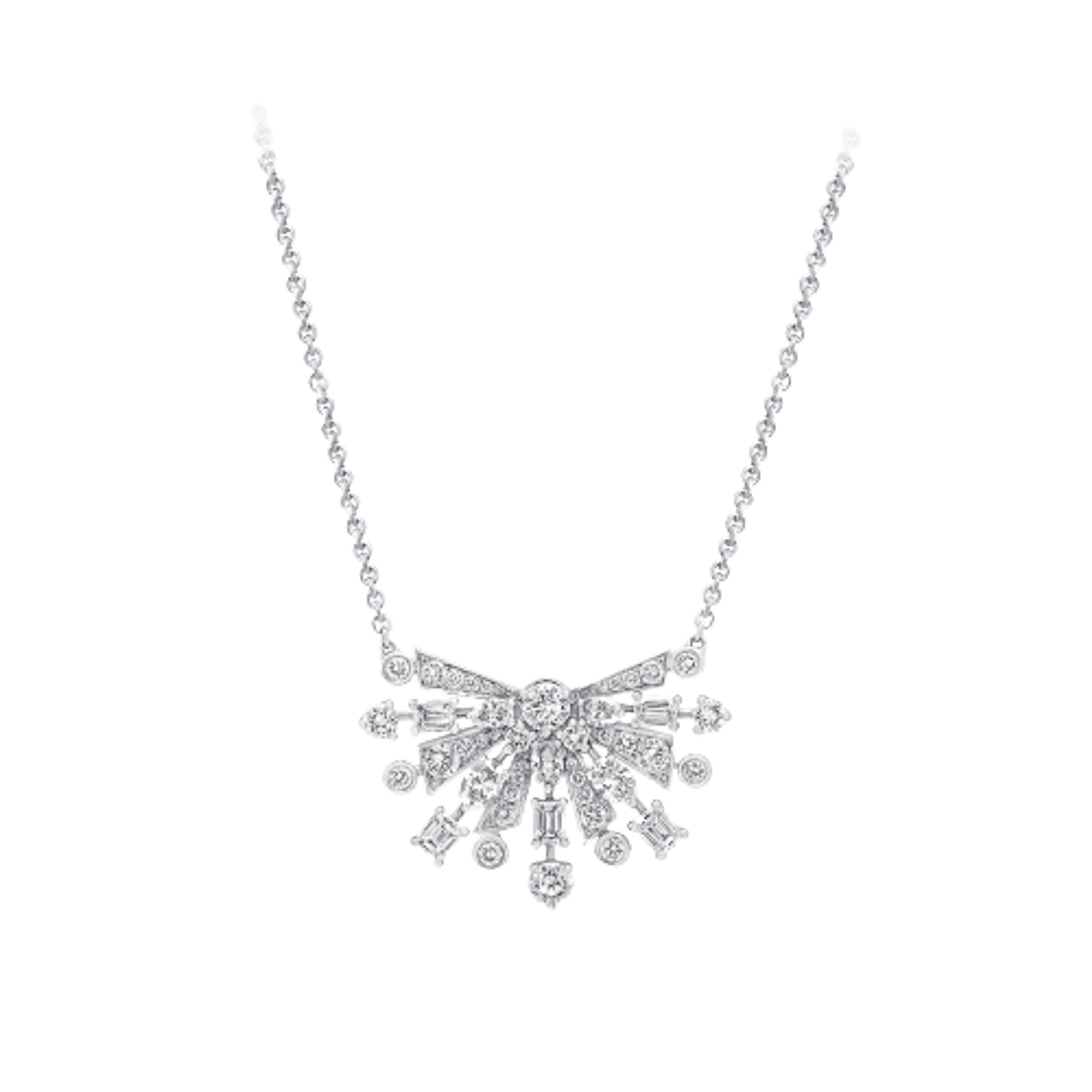 Pendant made of 18K white gold. Chain length 46 cm, adjustable. Total diamond weight - 2.24 ct F VS+.