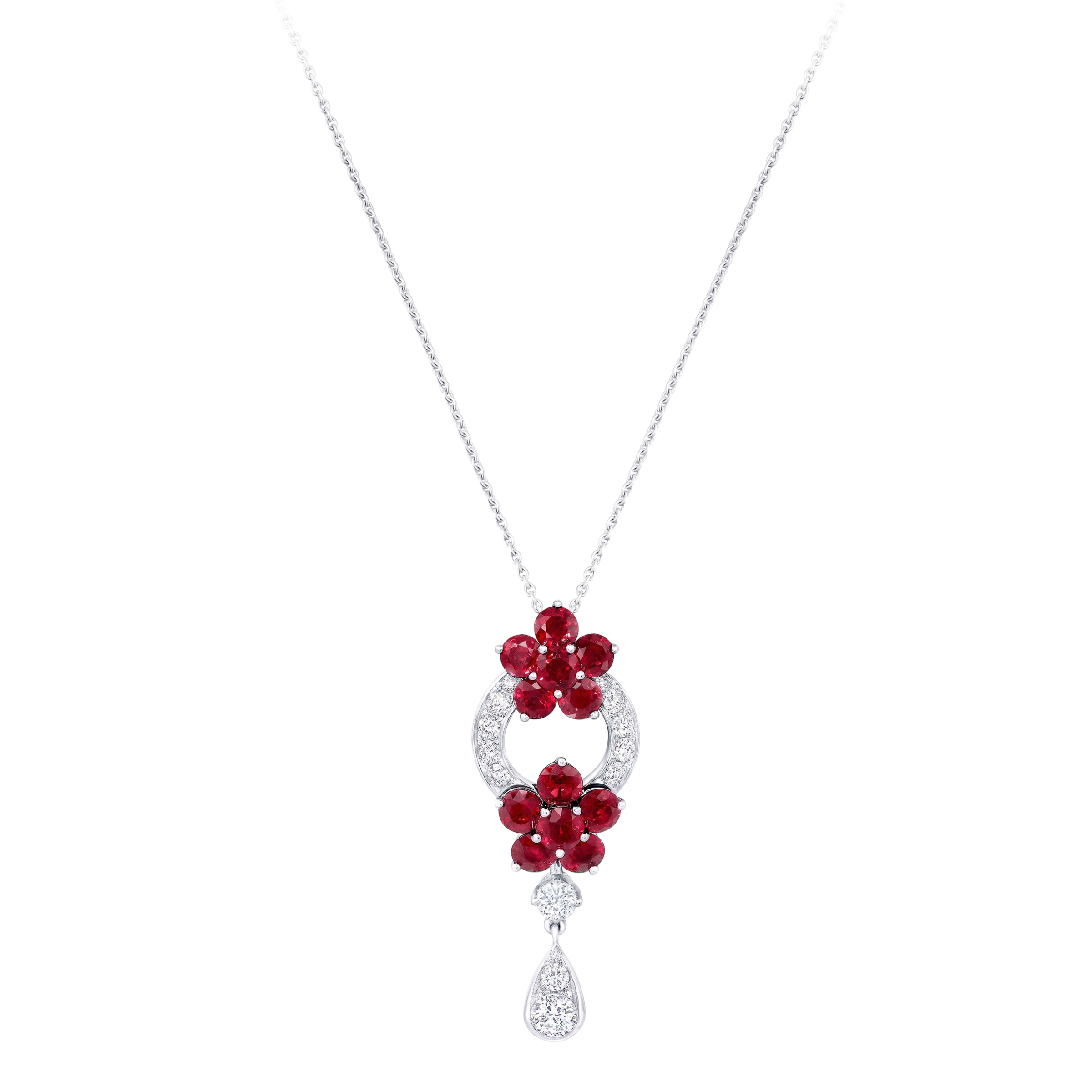 Pendant made of 18K white gold. Total diamond weight - 0.85 ct F VS+. Total ruby weight - 3.48 ct.