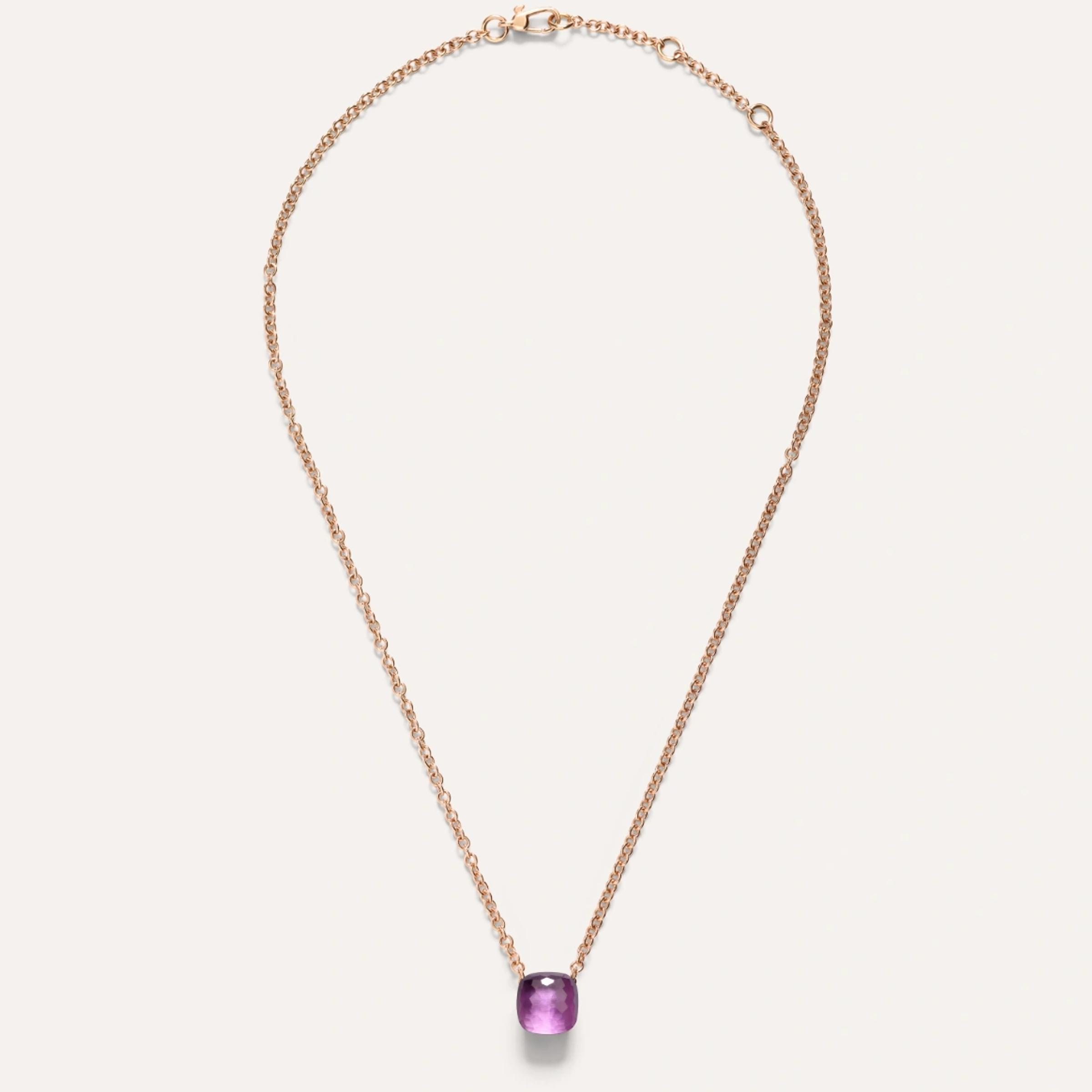 Necklace made of 18K rose and white gold. Adjustable chain length: 38-40-42 cm. Amethyst weighing 4.8 ct.
