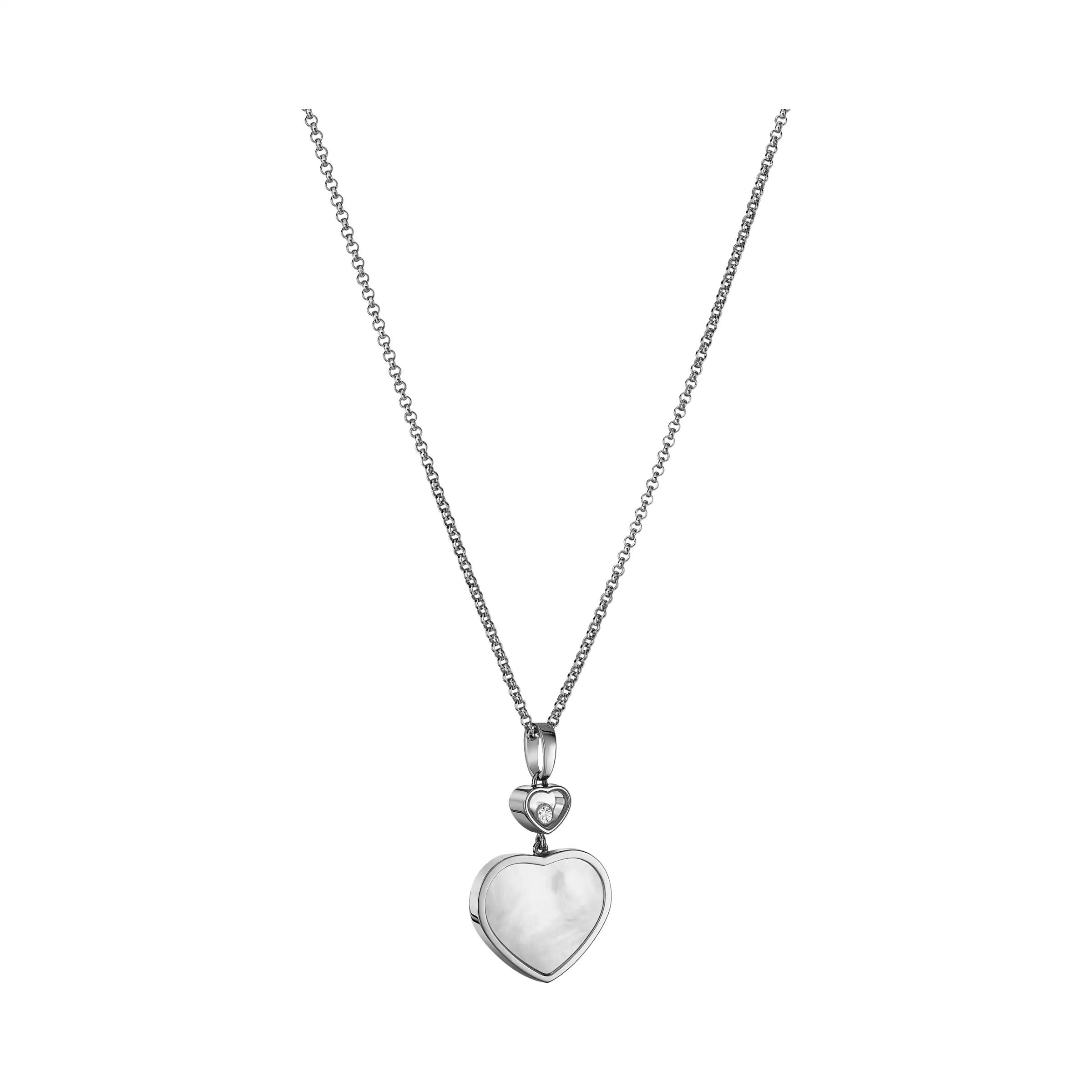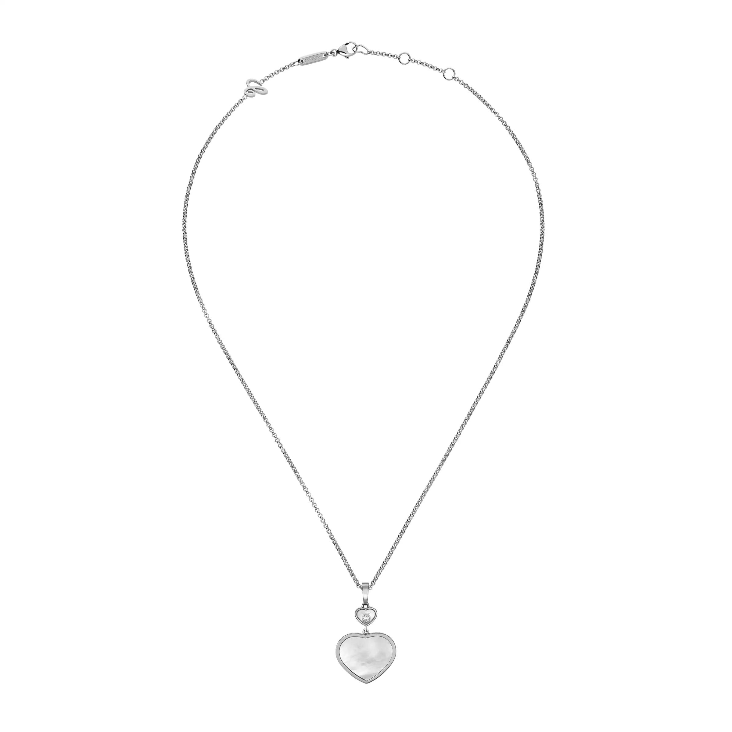 18 kt white gold pendant Chain length 45 cm Total diamond weight 0.05 ct Mother-of-pearl