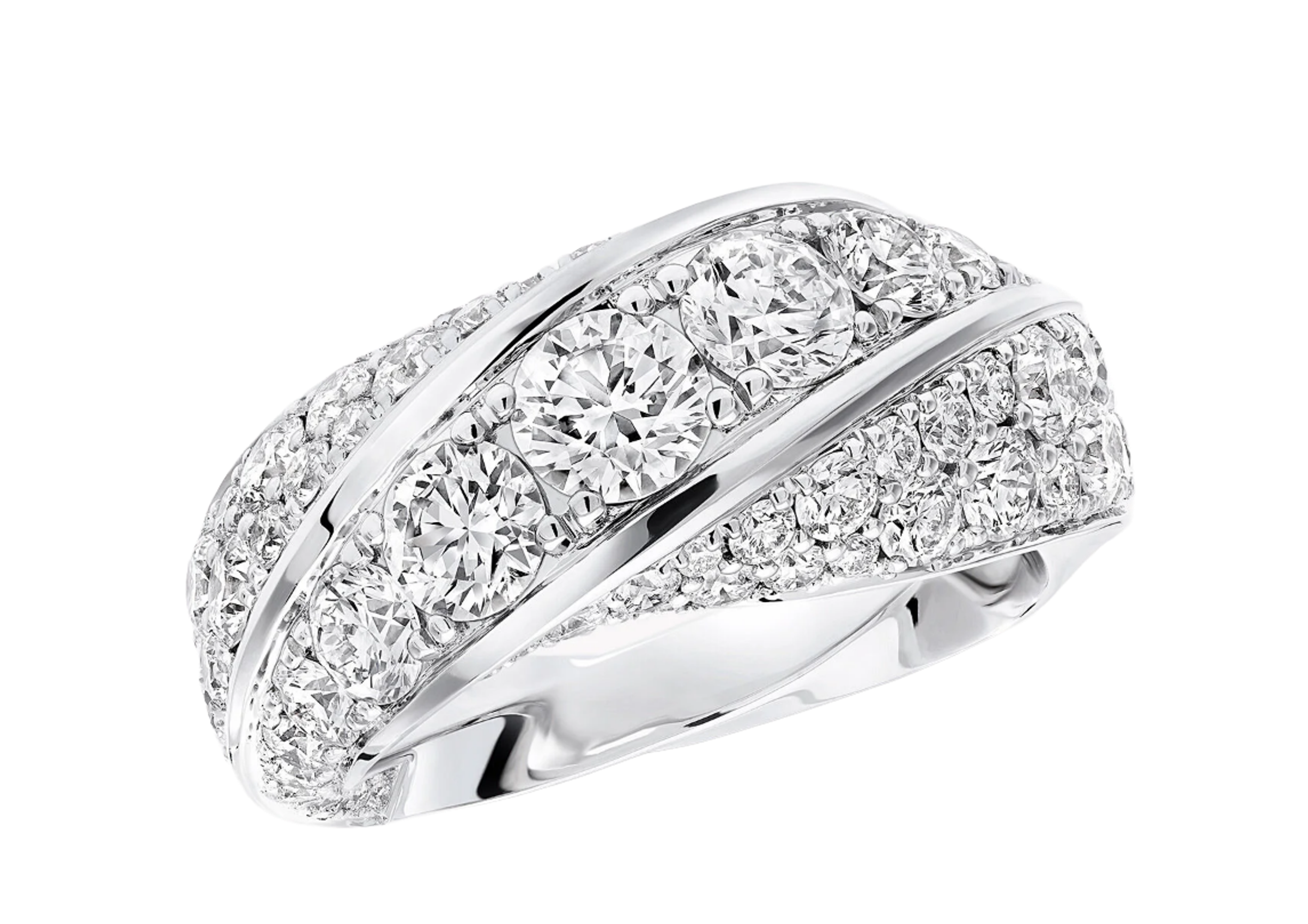 Ring made of 18K white gold. Total diamond weight 3.43 ct, F, VS+.