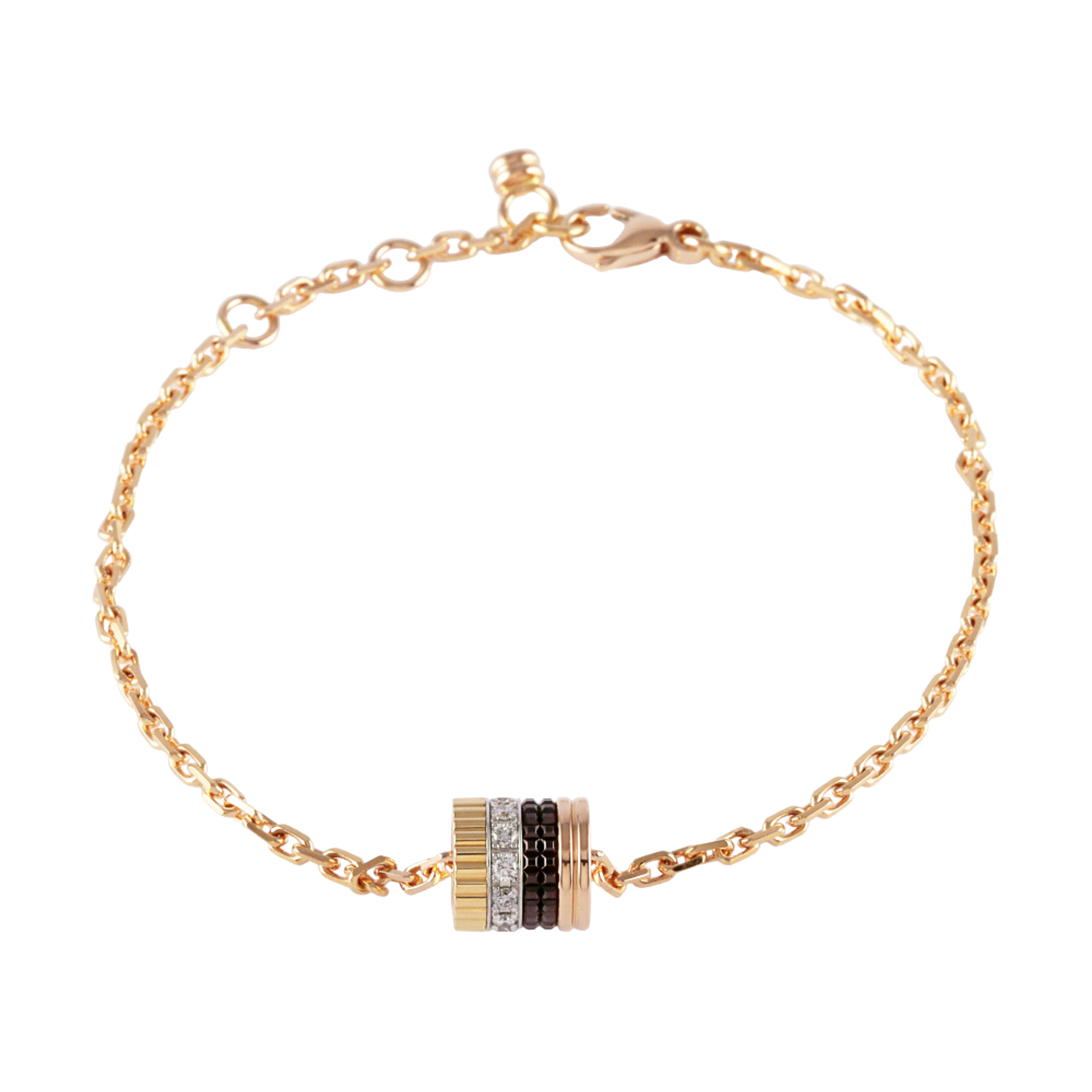Bracelet made of 18K yellow, white, and rose gold, and brown PVD. Bracelet length 17.5 cm, adjustable. Total diamond weight - 0.11 ct.