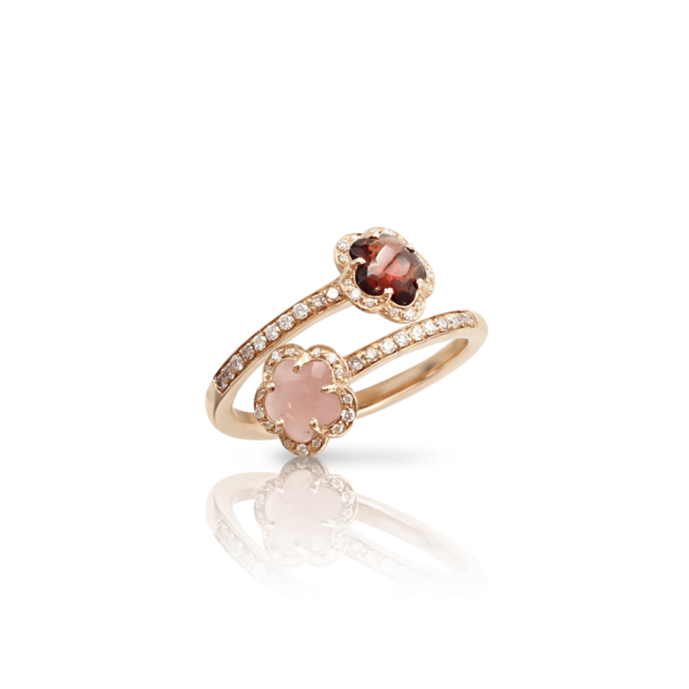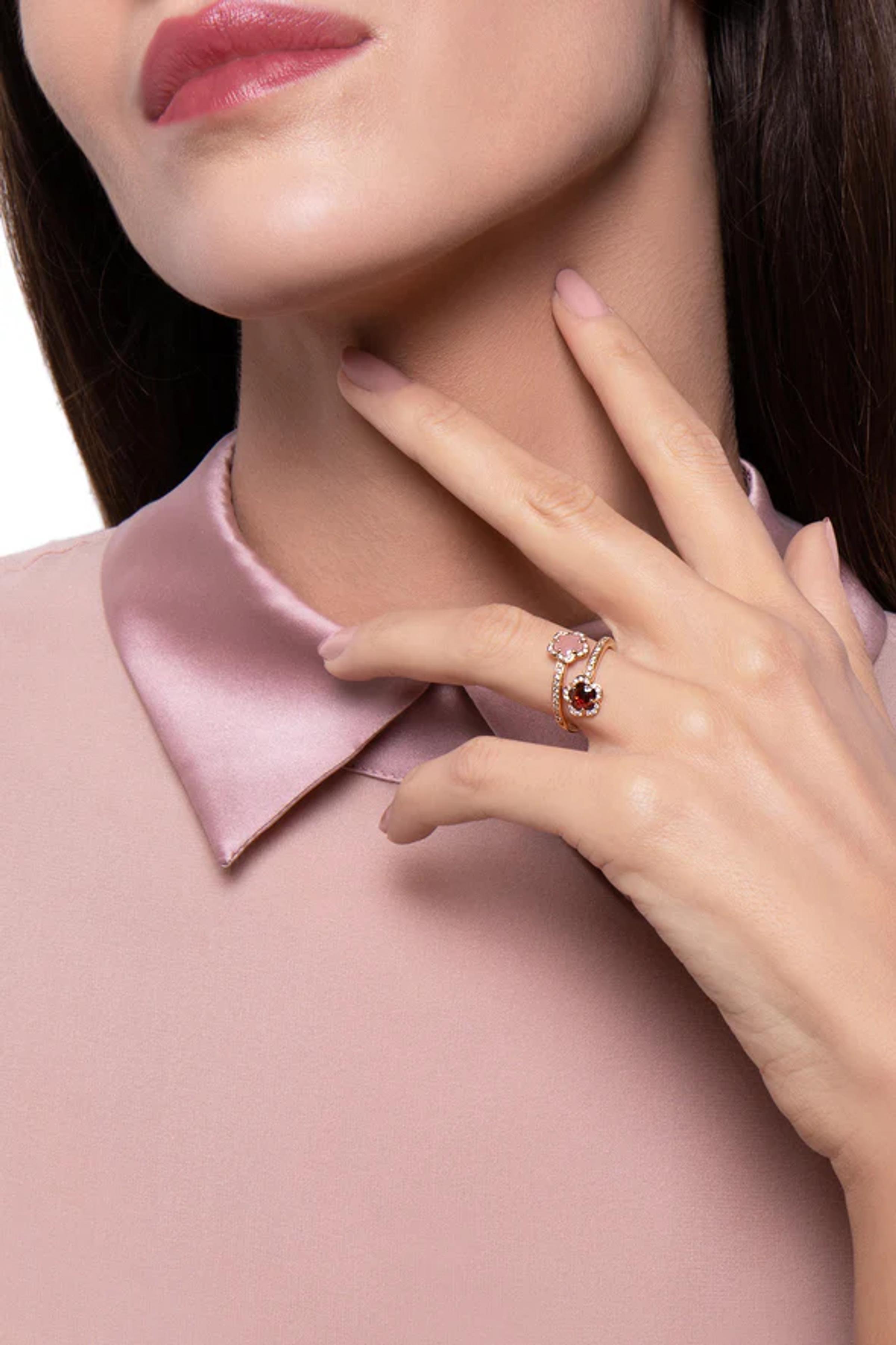 Ring Figlia Dei Fiori Pink Chalcedony, Red Garnet