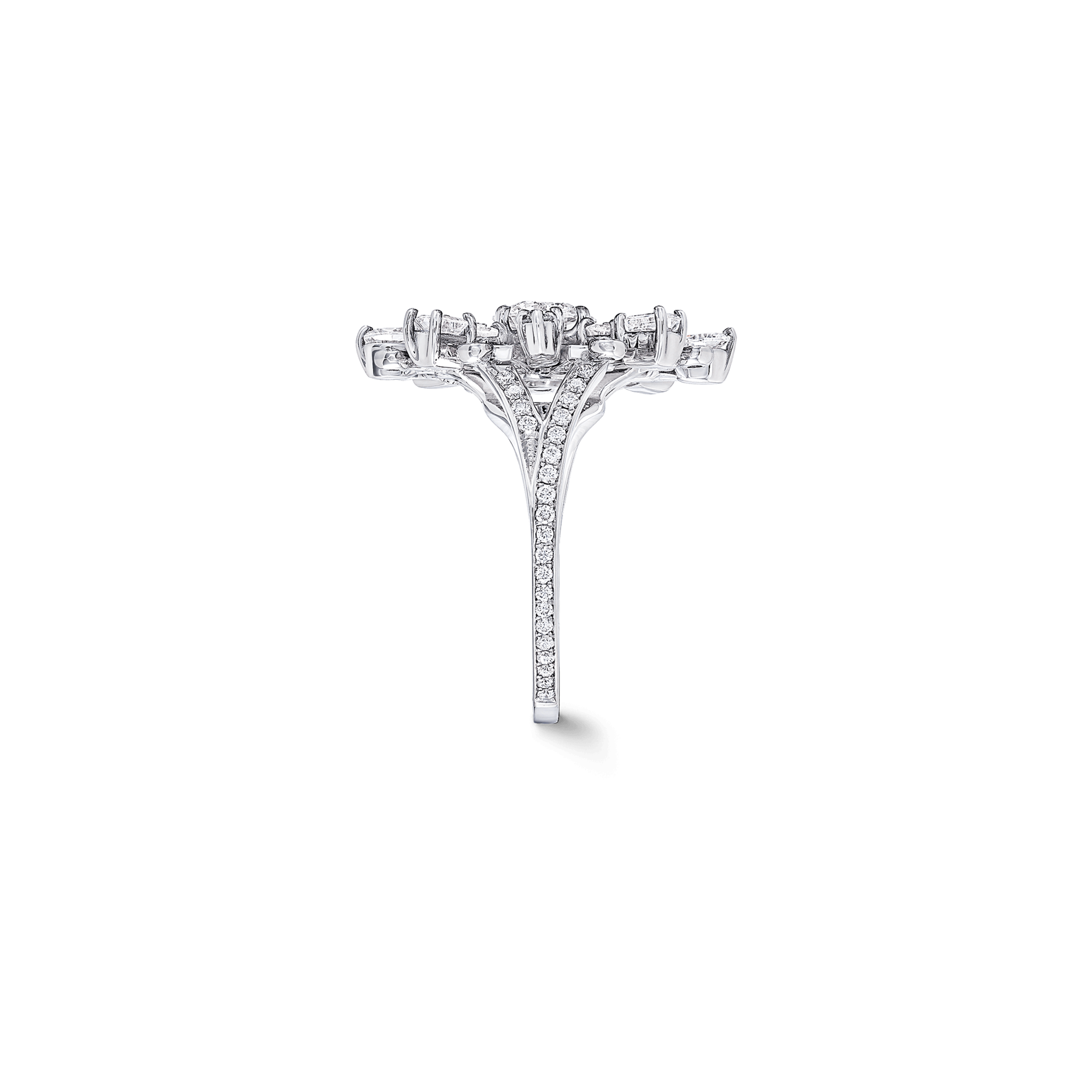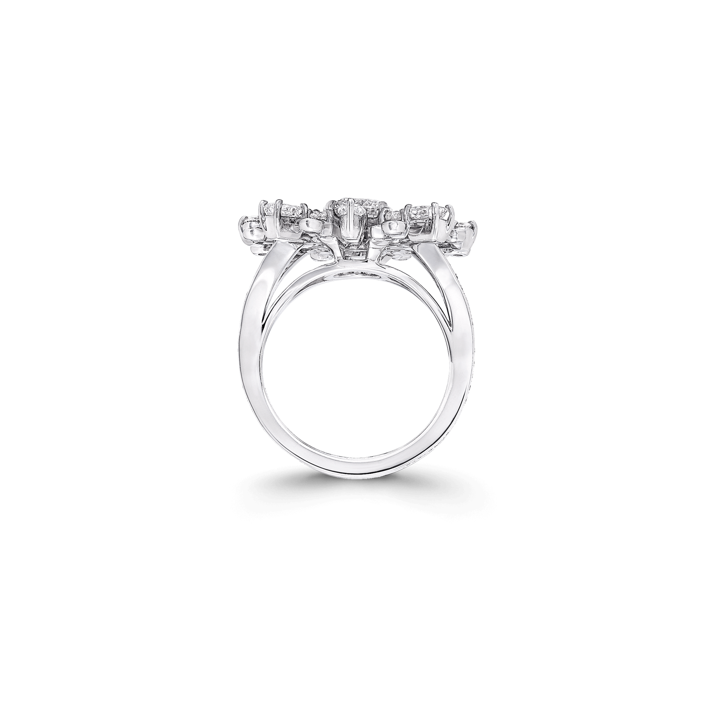 Ring made of 18K white gold. Central diamond - 0.91 ct, F, VVS2, GIA. Total diamond weight - 1.95 ct, F, VS+.