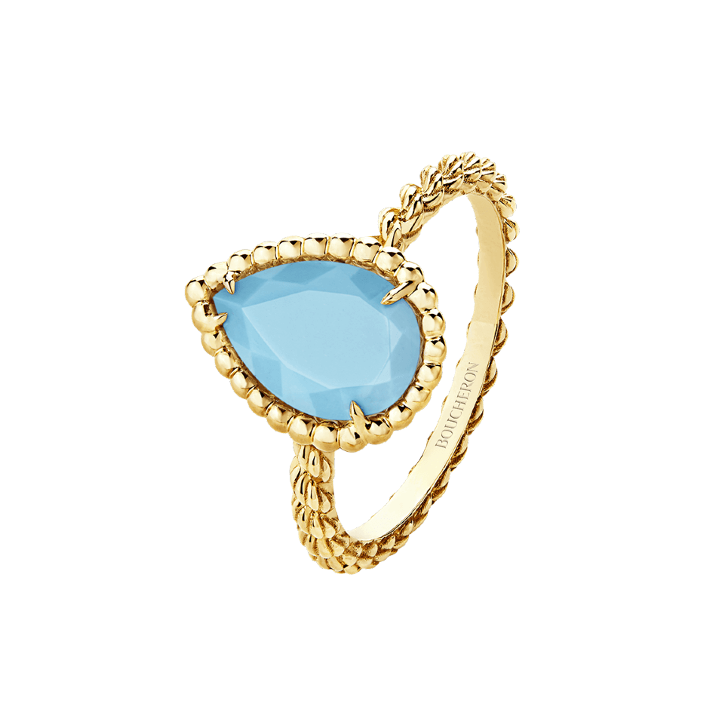 Ring made of 18K yellow gold. The total weight of the turquoise is 1.3 ct.