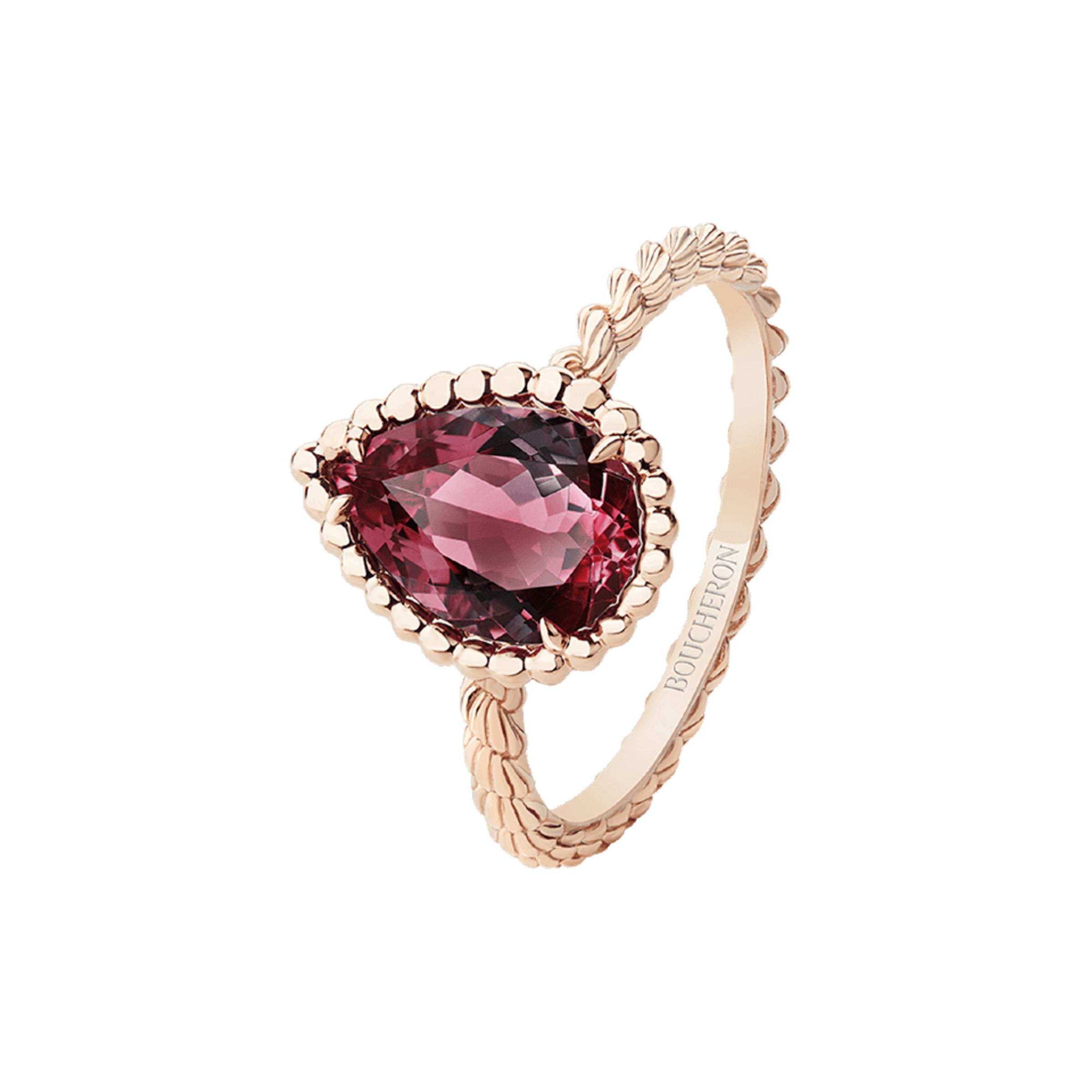Ring made of 18K rose gold. The total weight of the rhodolites is 1.9 ct.