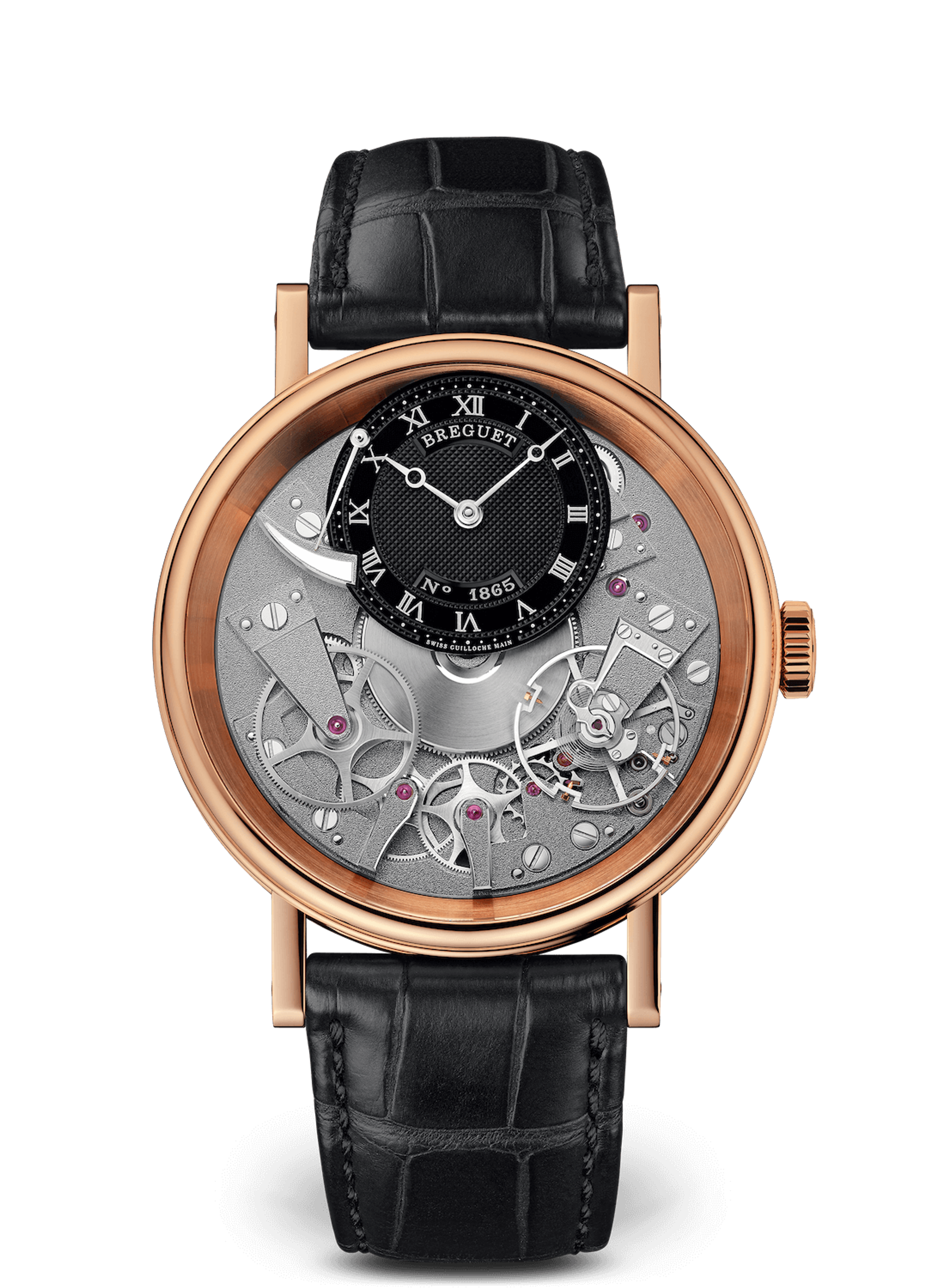 Men's mechanical watch with manual winding, 18K rose gold case, 40 mm. Alligator strap.