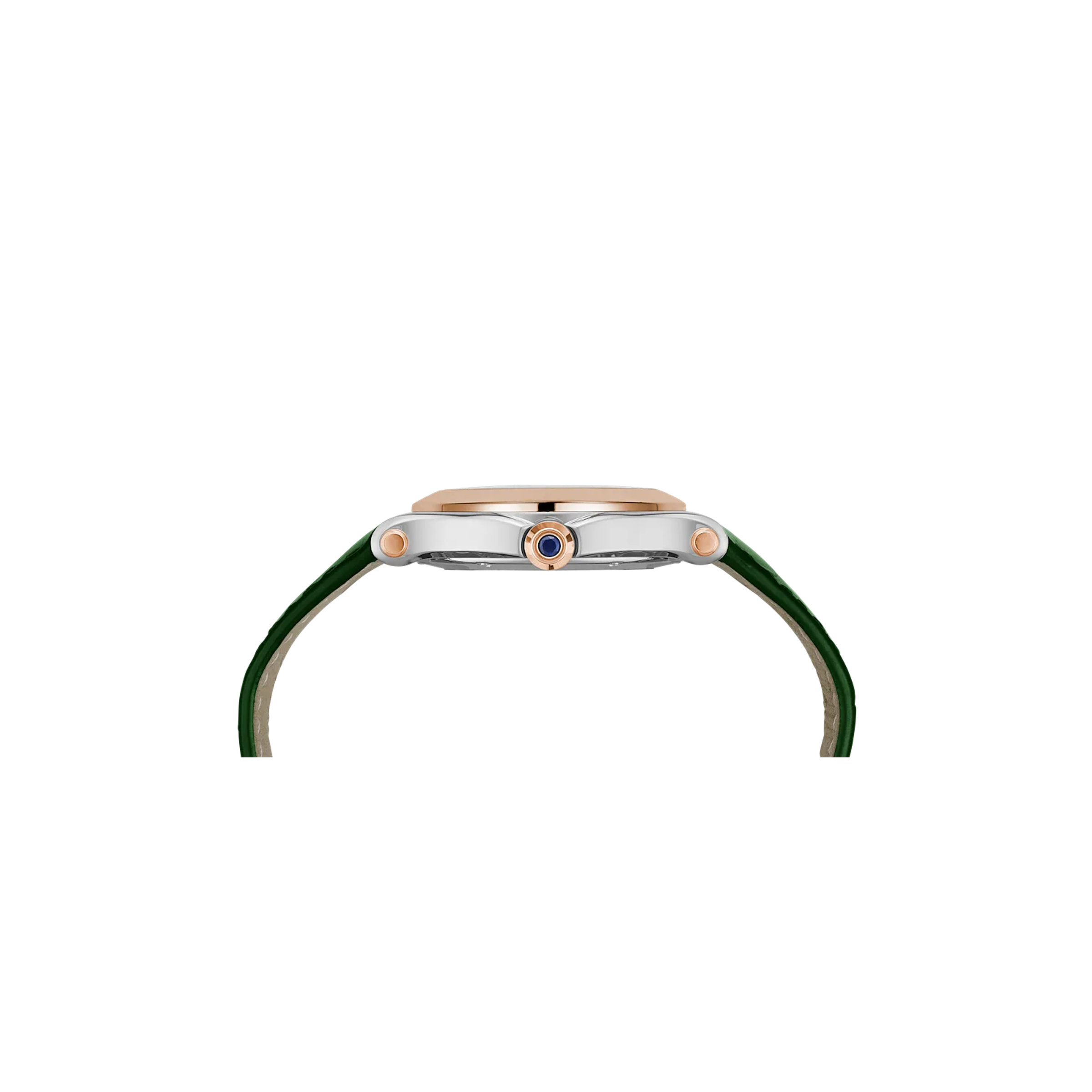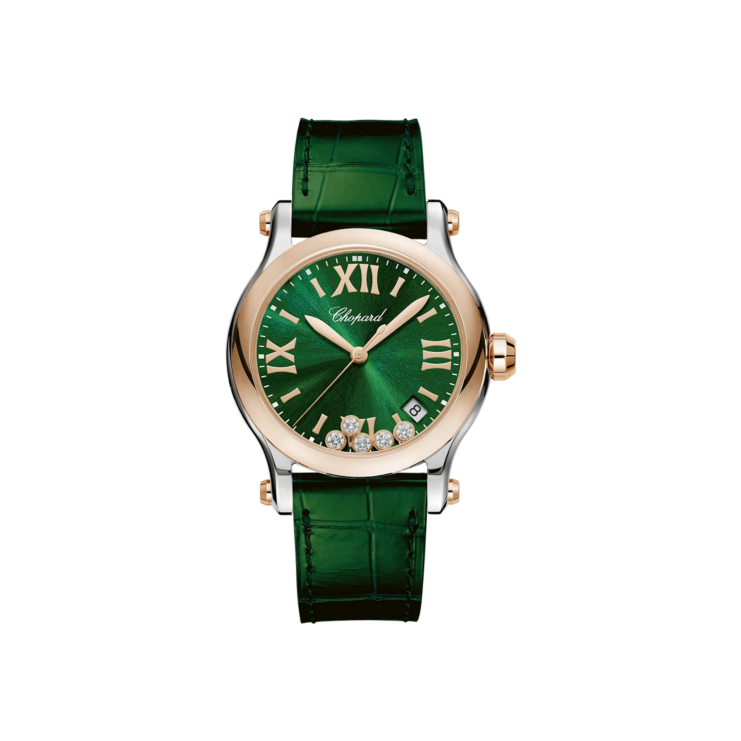 Dámské quartzové hodinky, pouzdro – ocel/růžové zlato 18K, 36 mm Řemínek – aligátor Celková váha diamantů – 0,24 ct Celková váha safírů (korunka) – 0,10 ct